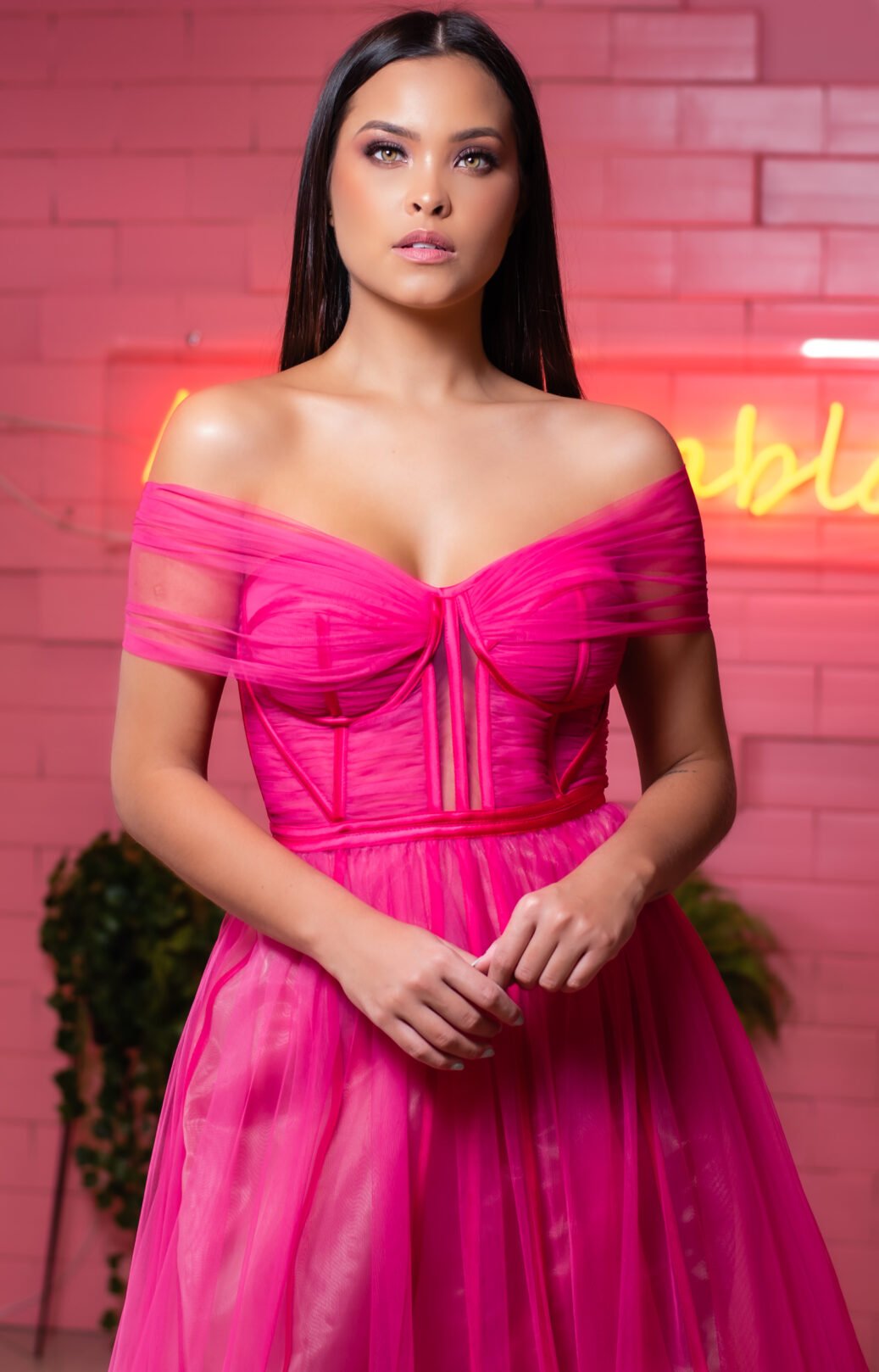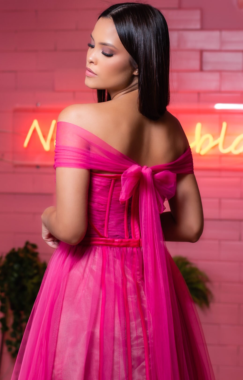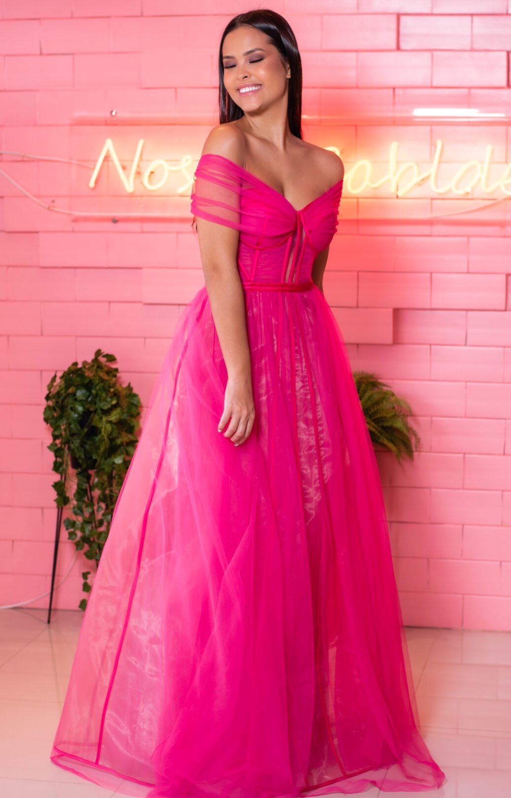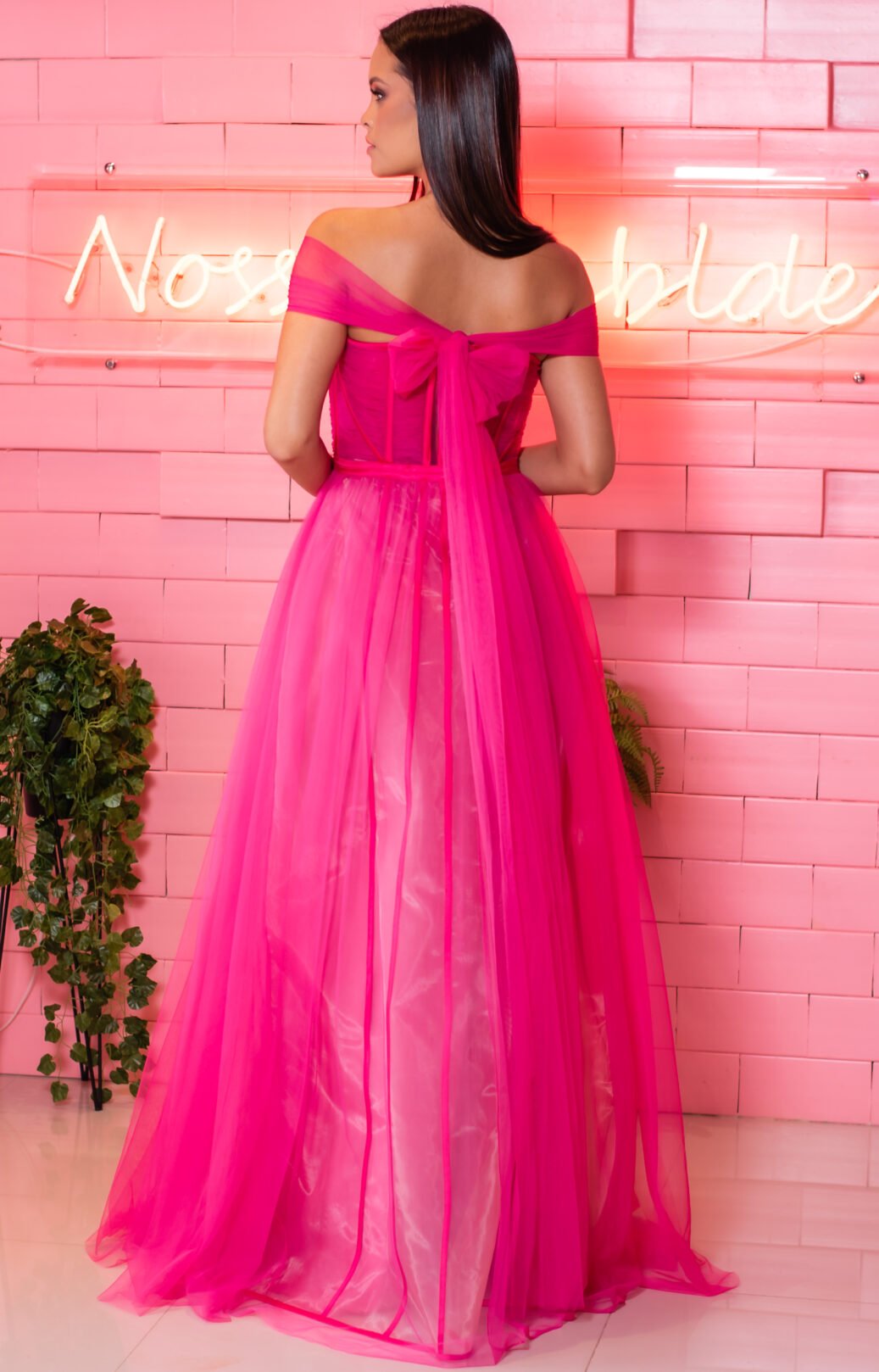 Vestido Longo Rosa Pink Tule Busto Estruturado