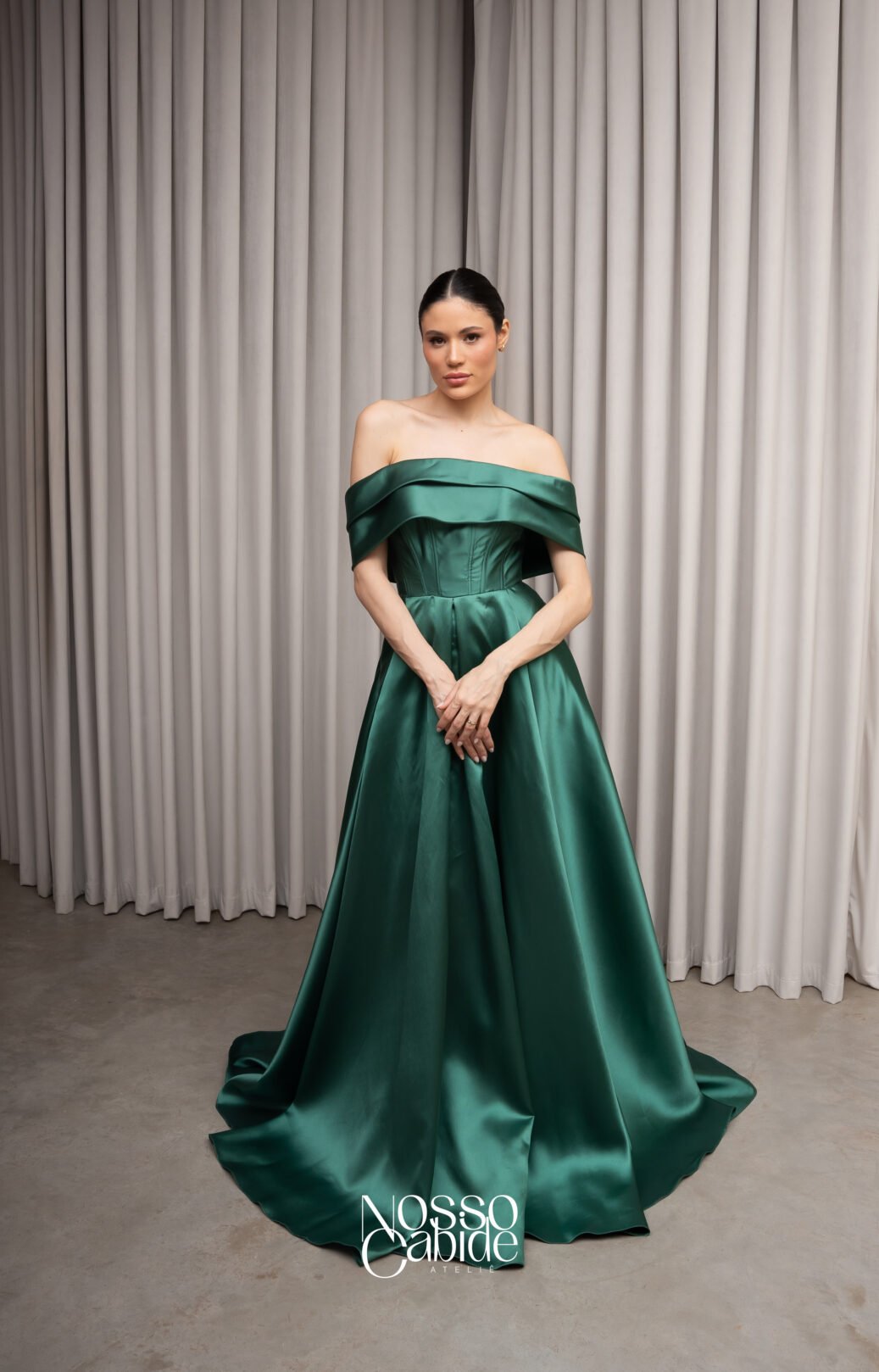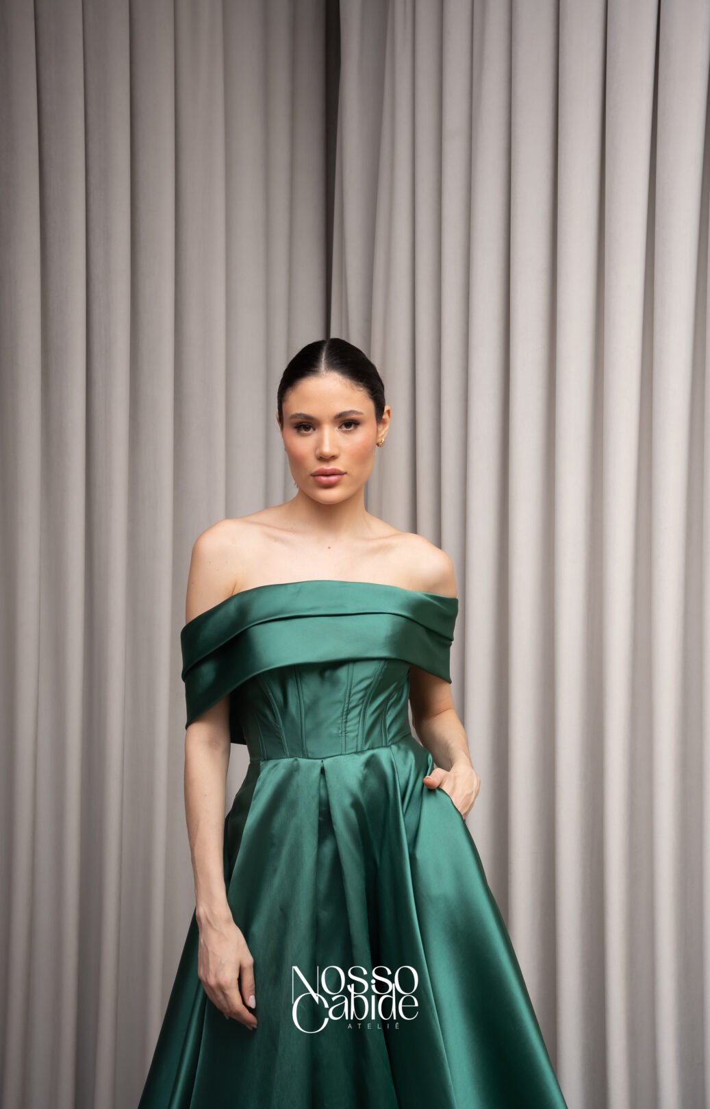 O corte impecável deste vestido realça a silhueta feminina, proporcionando um ajuste perfeito em todas as áreas do corpo. Longa e fluída acrescenta movimento e elegância a cada passo, enquanto valoriza os traços femininos.