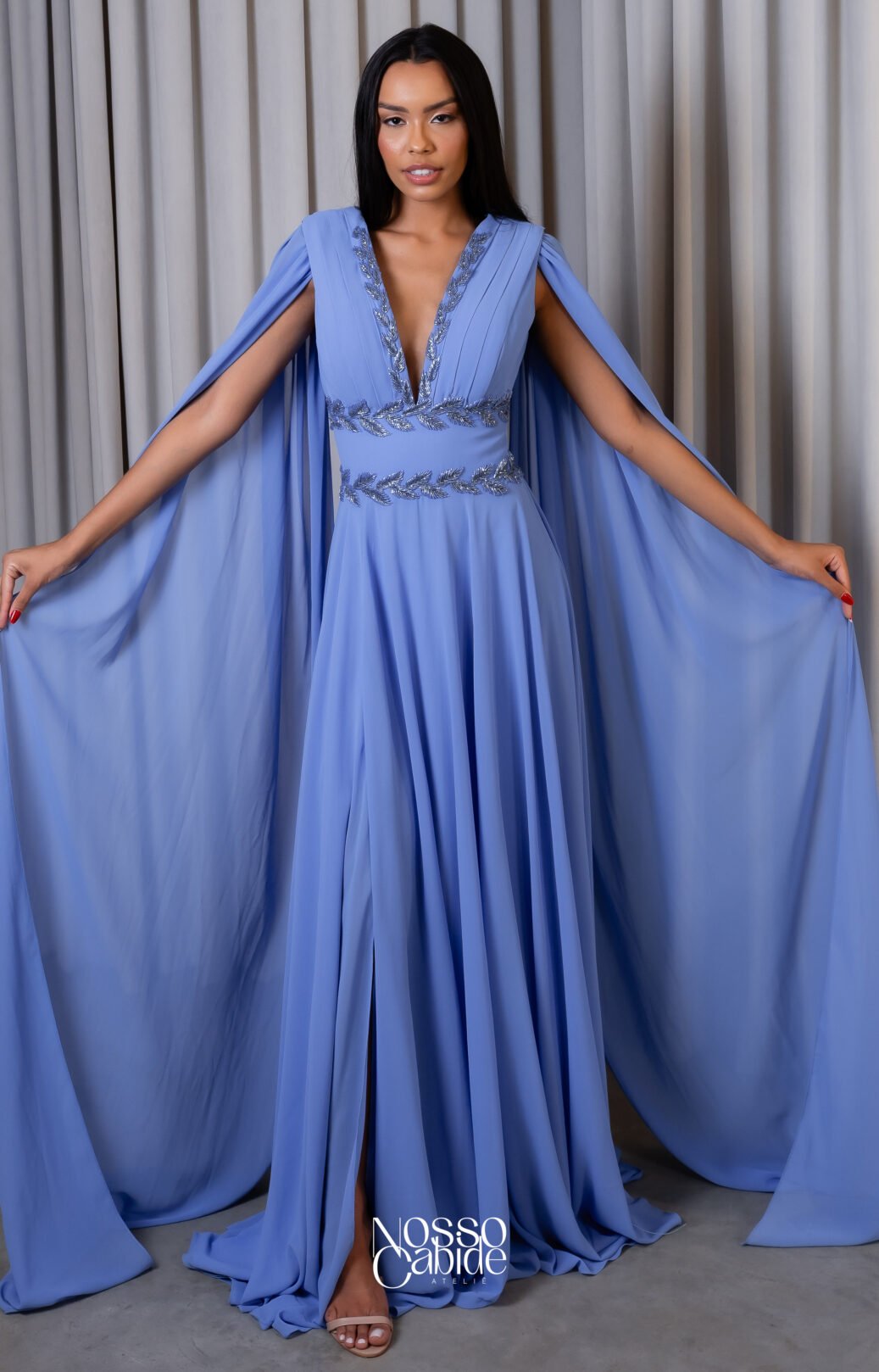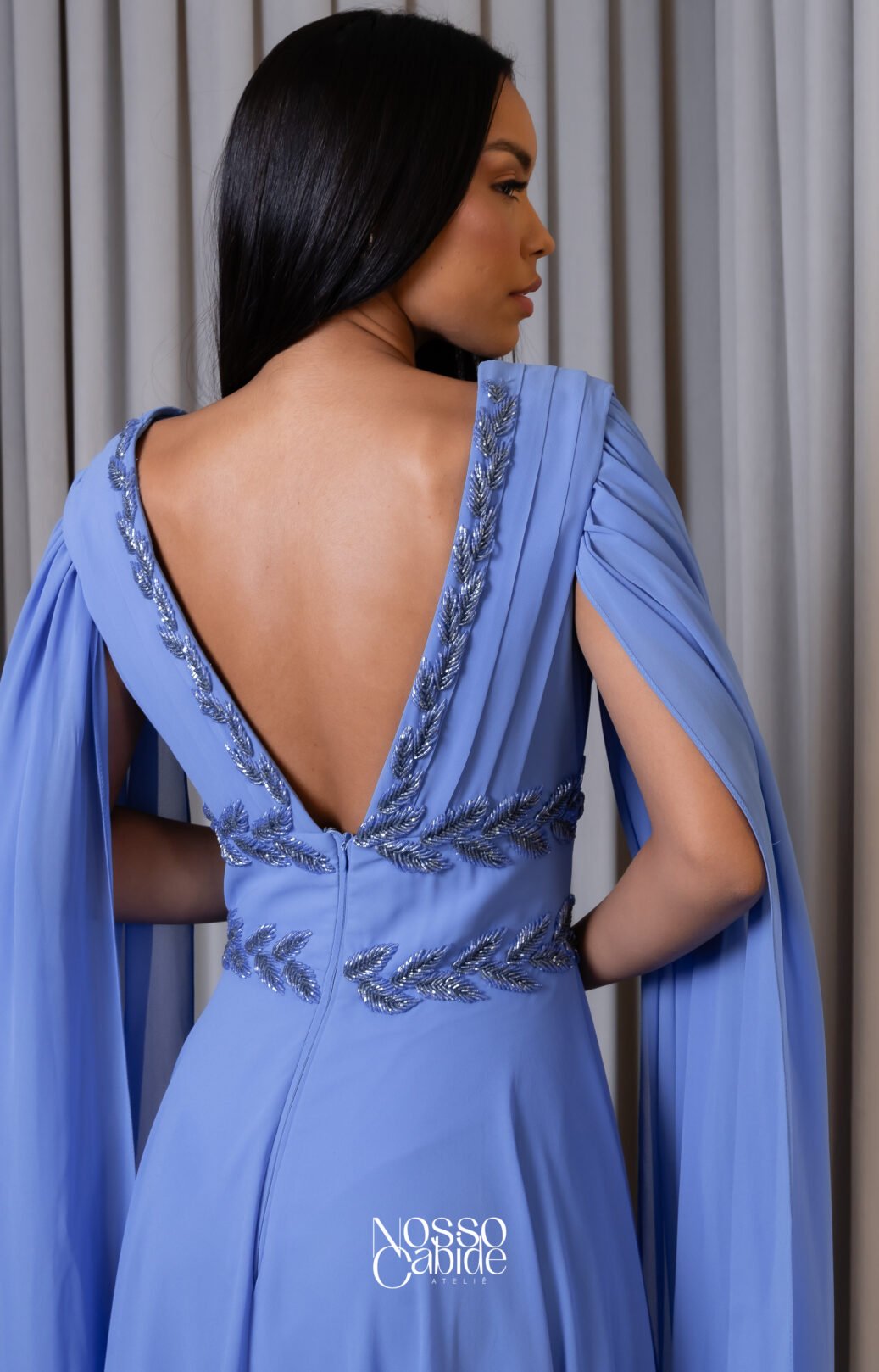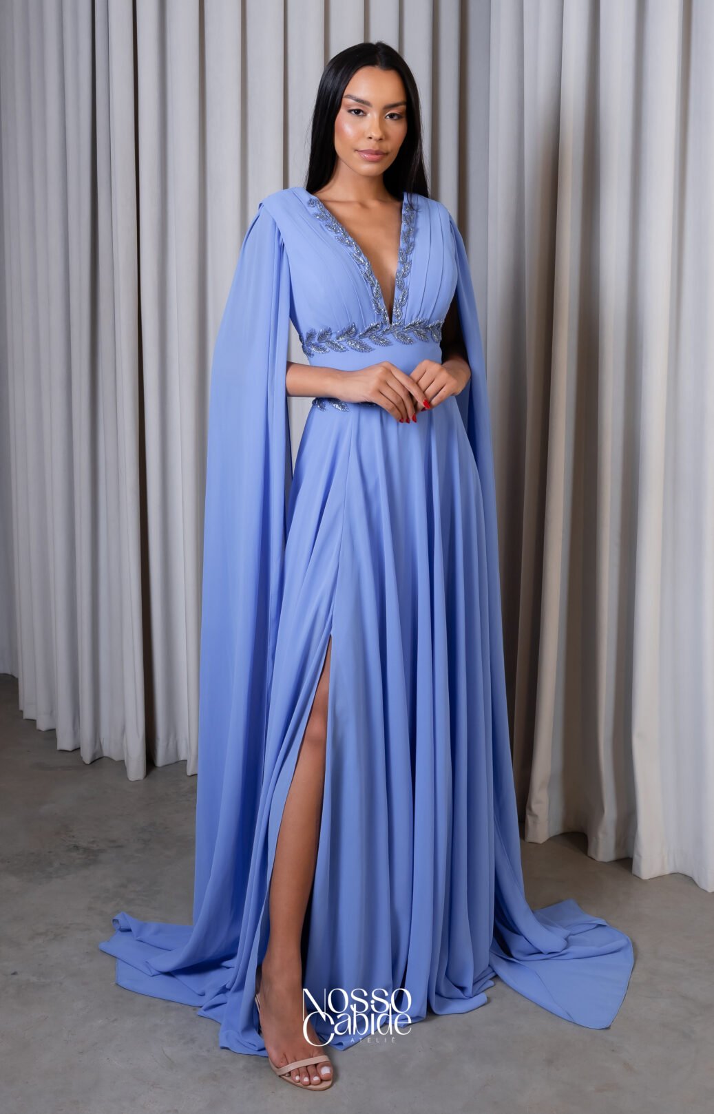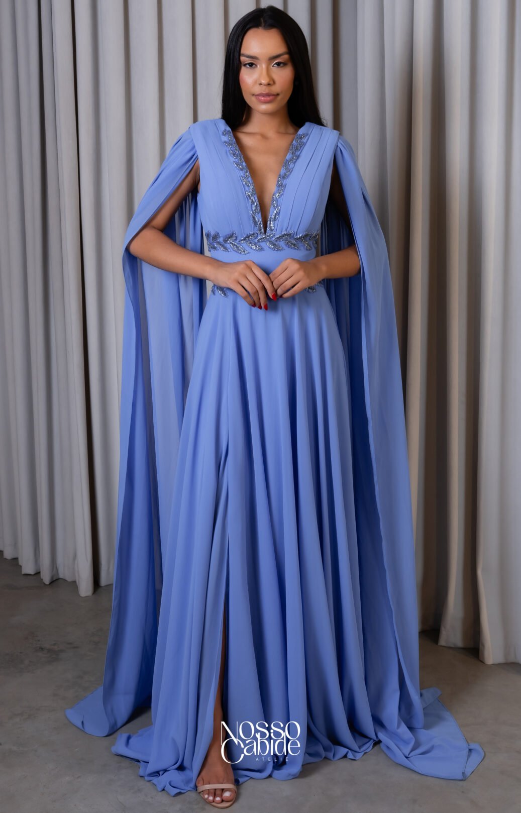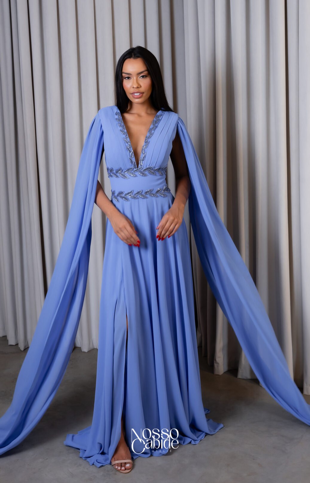 O corte impecável deste vestido realça a silhueta feminina, proporcionando um ajuste perfeito em todas as áreas do corpo. Longa e fluída acrescenta movimento e elegância a cada passo, enquanto valoriza os traços femininos.