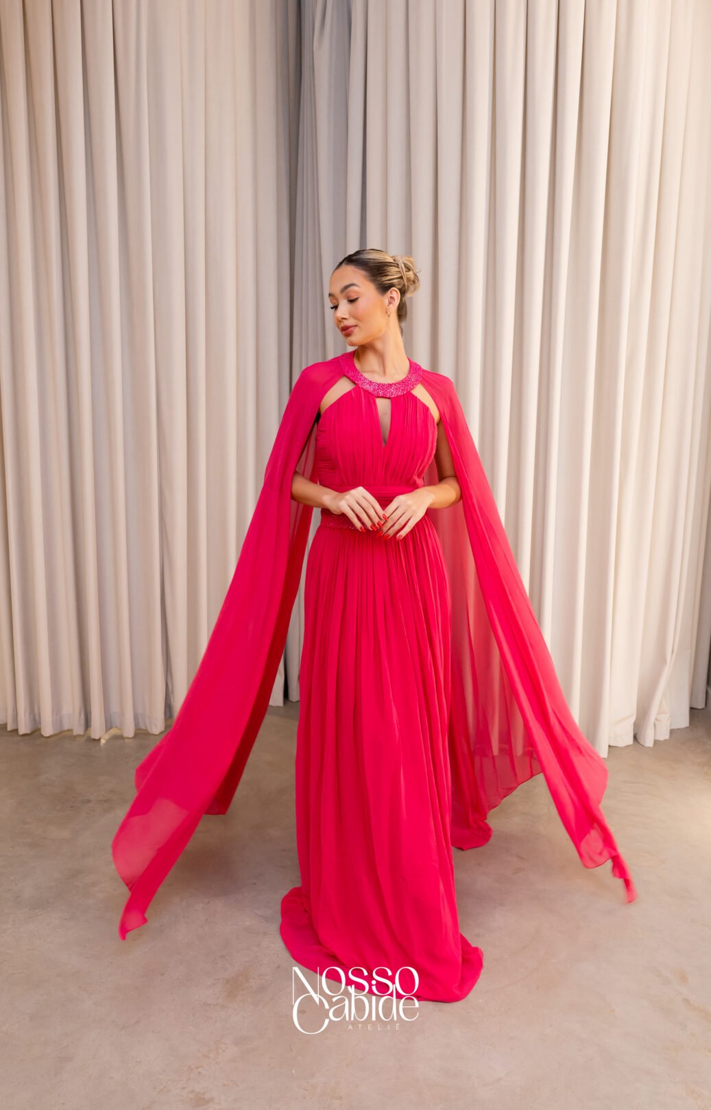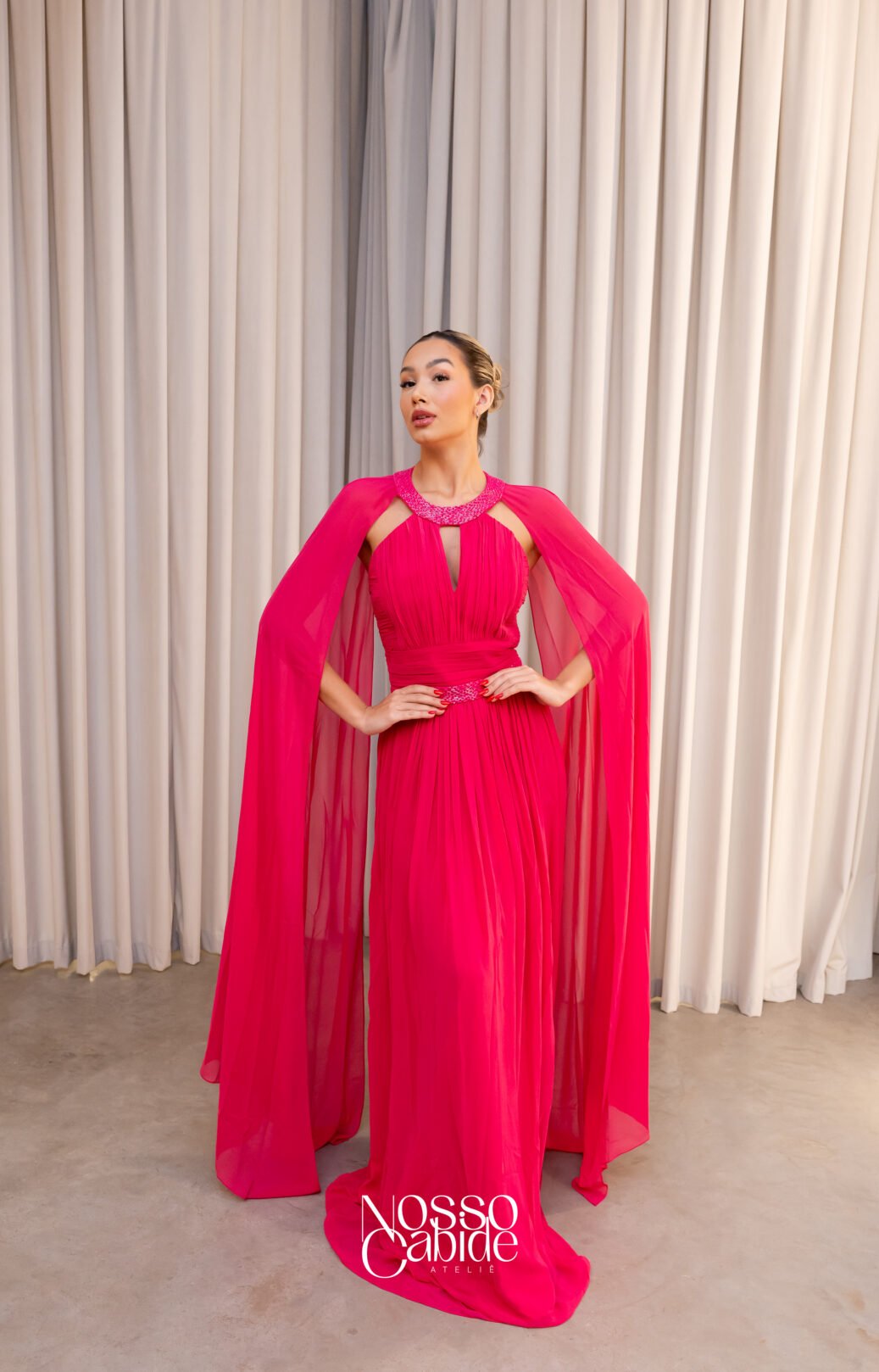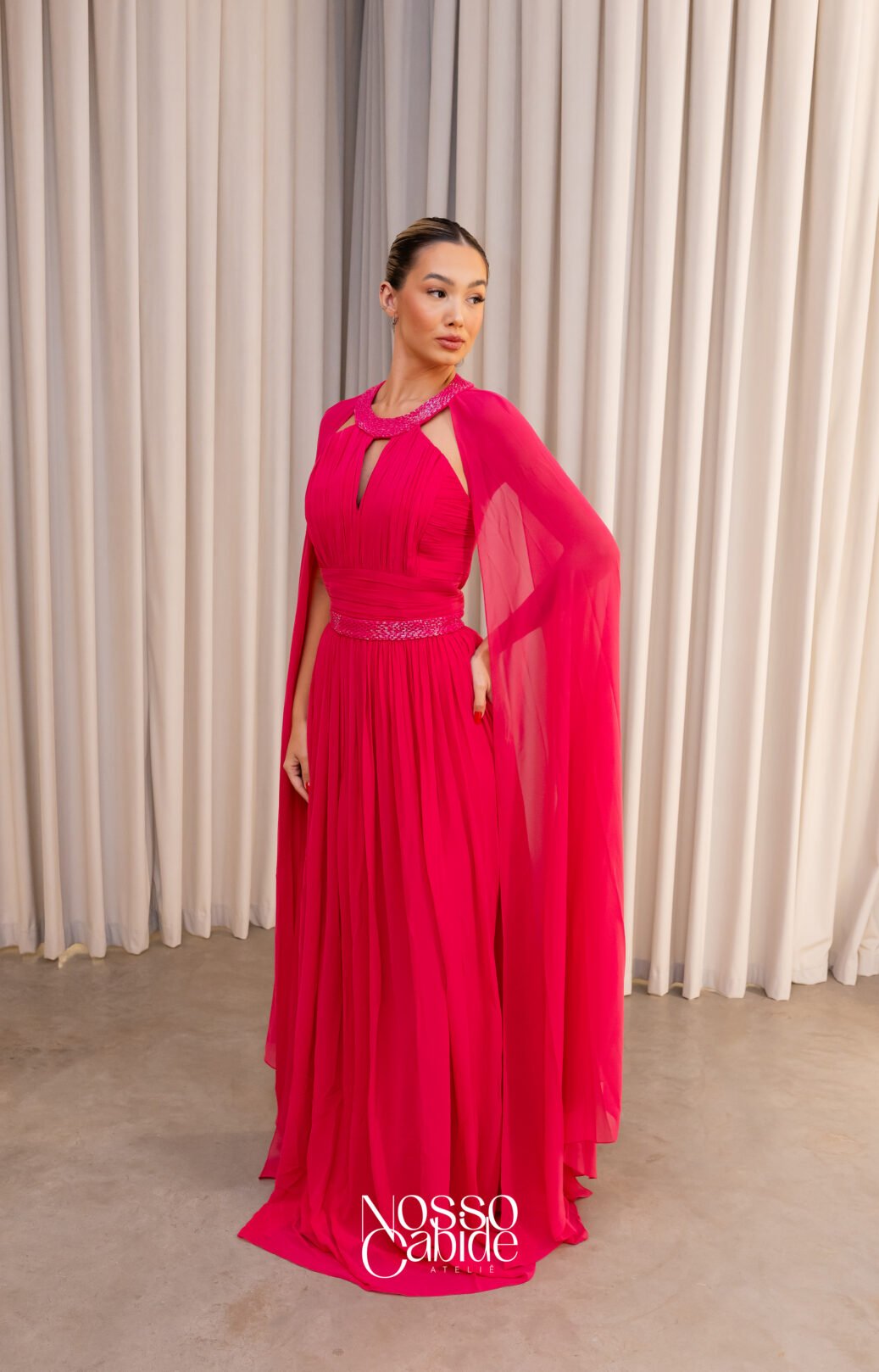 O corte impecável deste vestido realça a silhueta feminina, proporcionando um ajuste perfeito em todas as áreas do corpo. Longa e fluída acrescenta movimento e elegância a cada passo, enquanto valoriza os traços femininos.