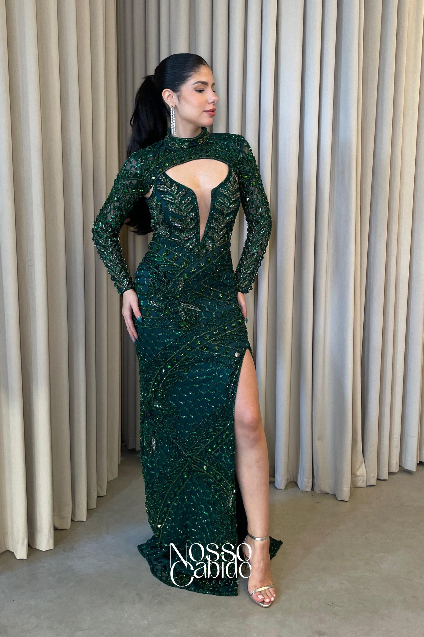 O corte impecável deste vestido realça a silhueta feminina, proporcionando um ajuste perfeito em todas as áreas do corpo. Longa e fluída acrescenta movimento e elegância a cada passo, enquanto valoriza os traços femininos.