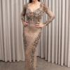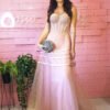 Vestido Longo Prata Abertura Lateral/ Costas Marca: Marie Tamanho 38