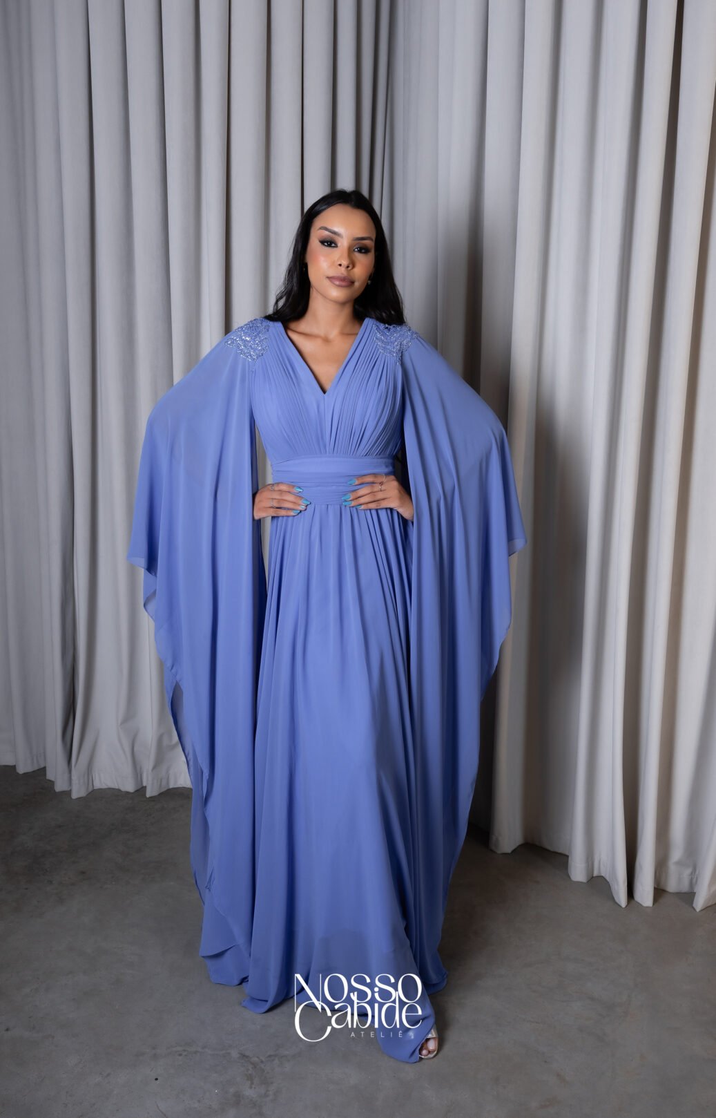 O corte impecável deste vestido realça a silhueta feminina, proporcionando um ajuste perfeito em todas as áreas do corpo. Longa e fluída acrescenta movimento e elegância a cada passo, enquanto valoriza os traços femininos.