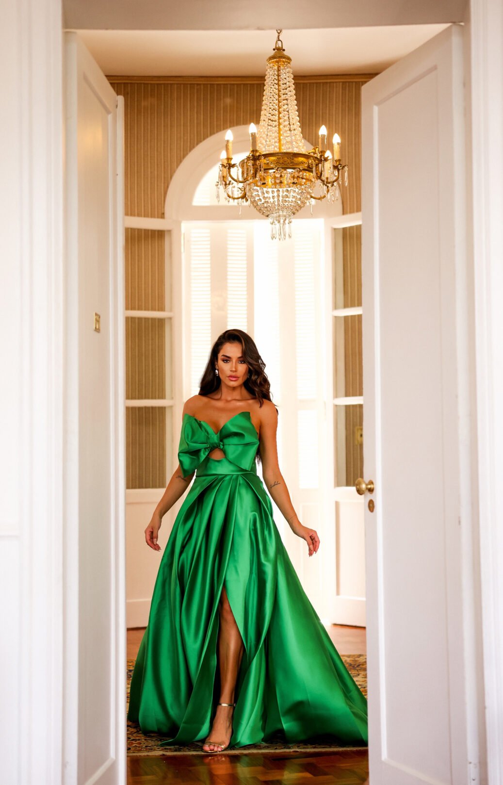 O corte impecável deste vestido realça a silhueta feminina, proporcionando um ajuste perfeito em todas as áreas do corpo. Longa e fluída acrescenta movimento e elegância a cada passo, enquanto valoriza os traços femininos.