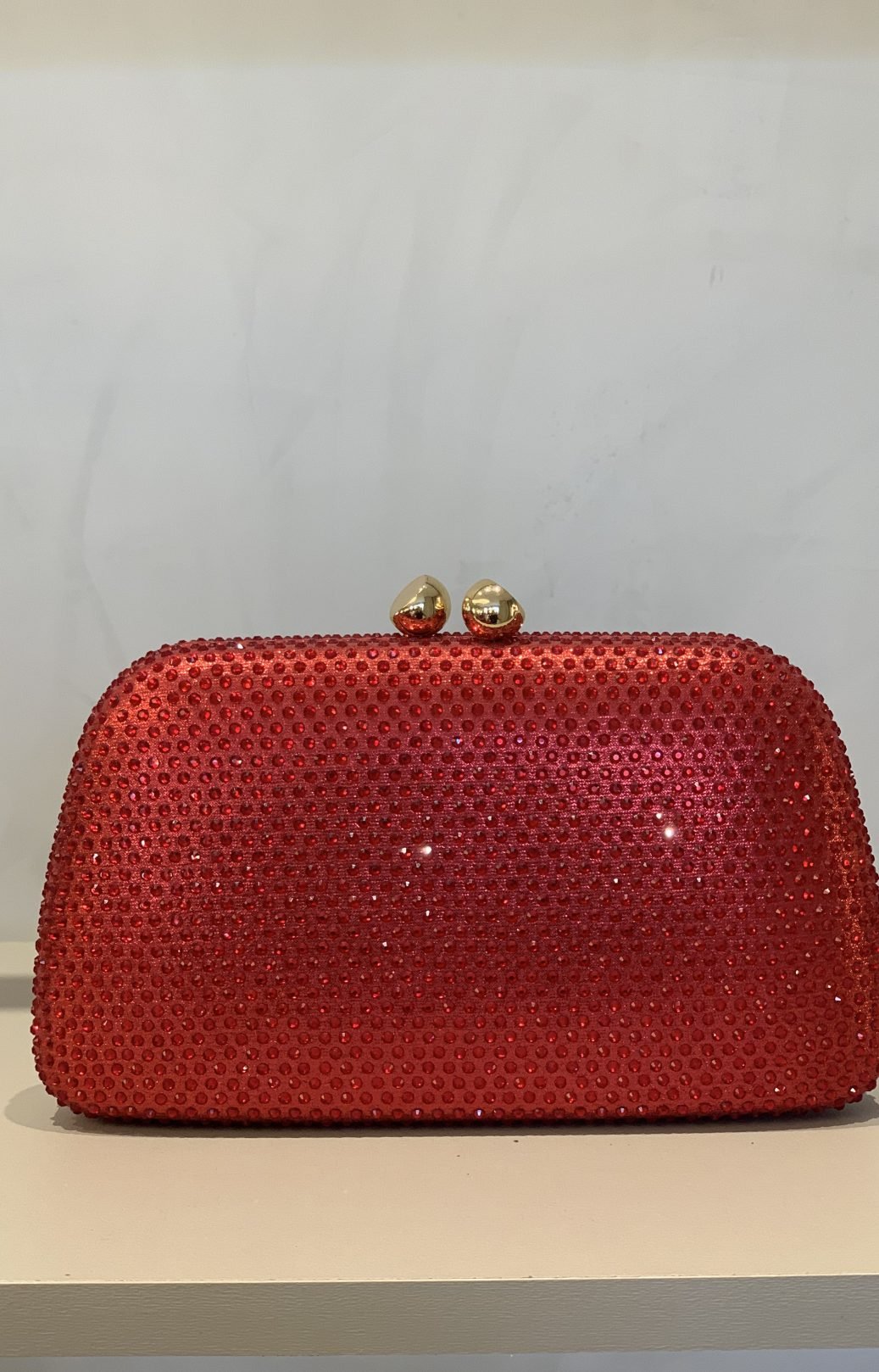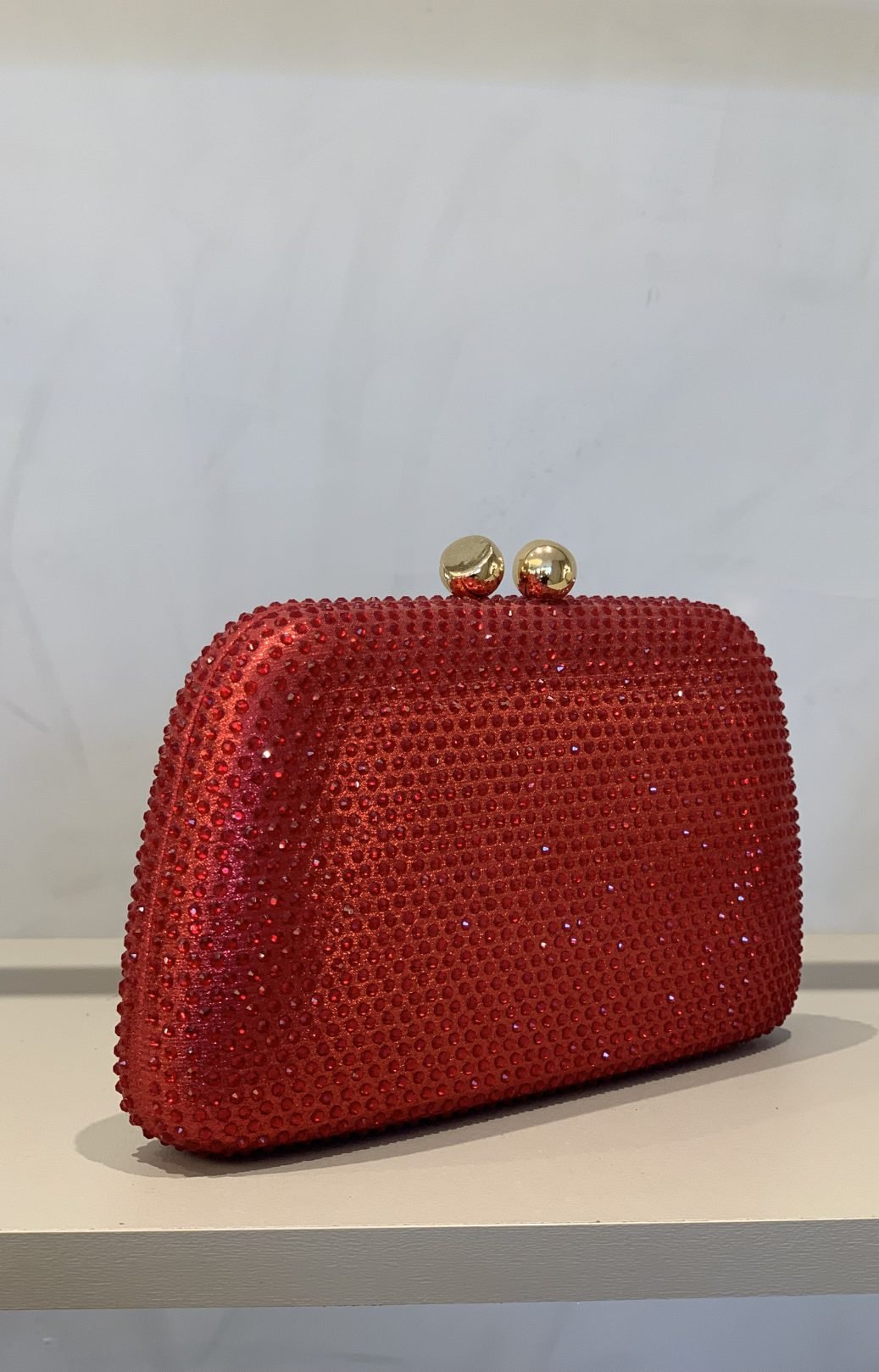 CLUTCH STRASS SWAROVSKI RETANGULO VERMELHO