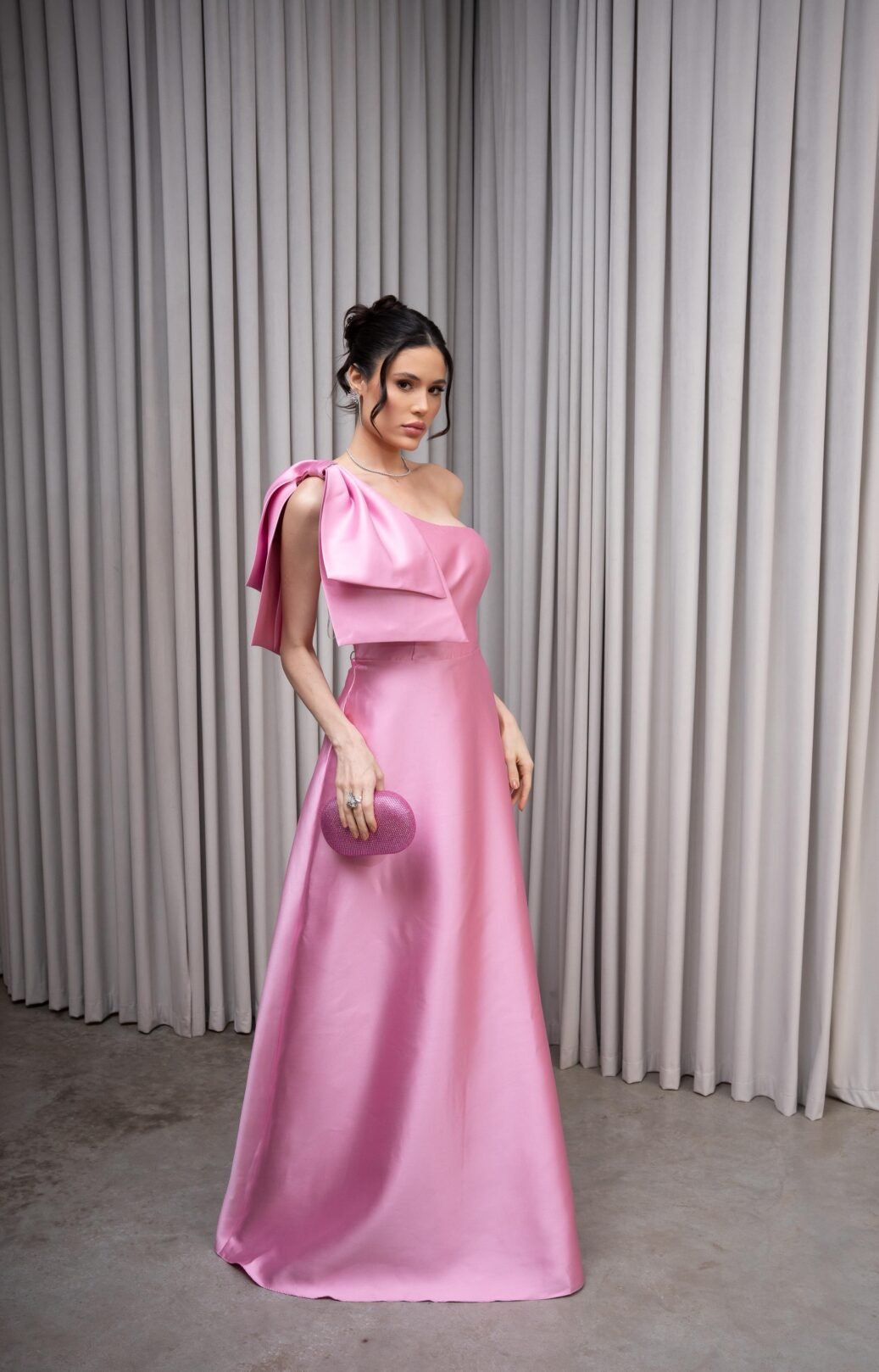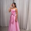 O corte impecável deste vestido realça a silhueta feminina, proporcionando um ajuste perfeito em todas as áreas do corpo. Longa e fluída acrescenta movimento e elegância a cada passo, enquanto valoriza os traços femininos.