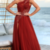 O corte impecável deste vestido realça a silhueta feminina, proporcionando um ajuste perfeito em todas as áreas do corpo. Longa e fluída acrescenta movimento e elegância a cada passo, enquanto valoriza o ombro e o pescoço.