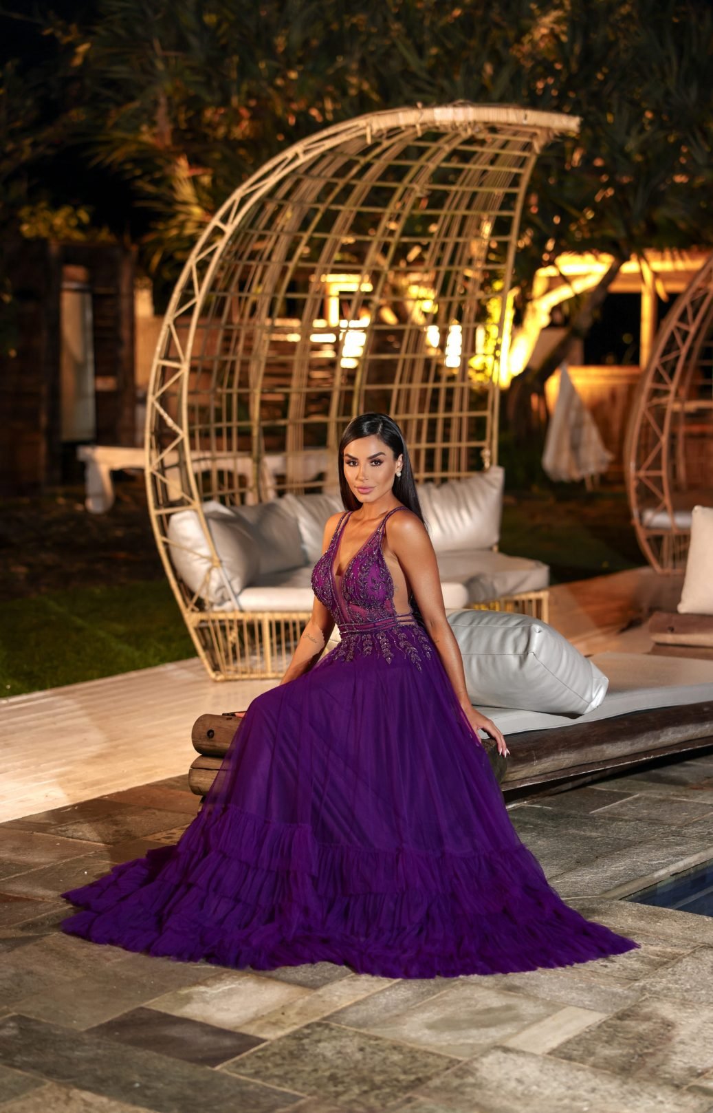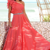 O corte impecável deste vestido realça a silhueta feminina, proporcionando um ajuste perfeito em todas as áreas do corpo. Longa e fluída acrescenta movimento e elegância a cada passo, enquanto valoriza o ombro e o pescoço.