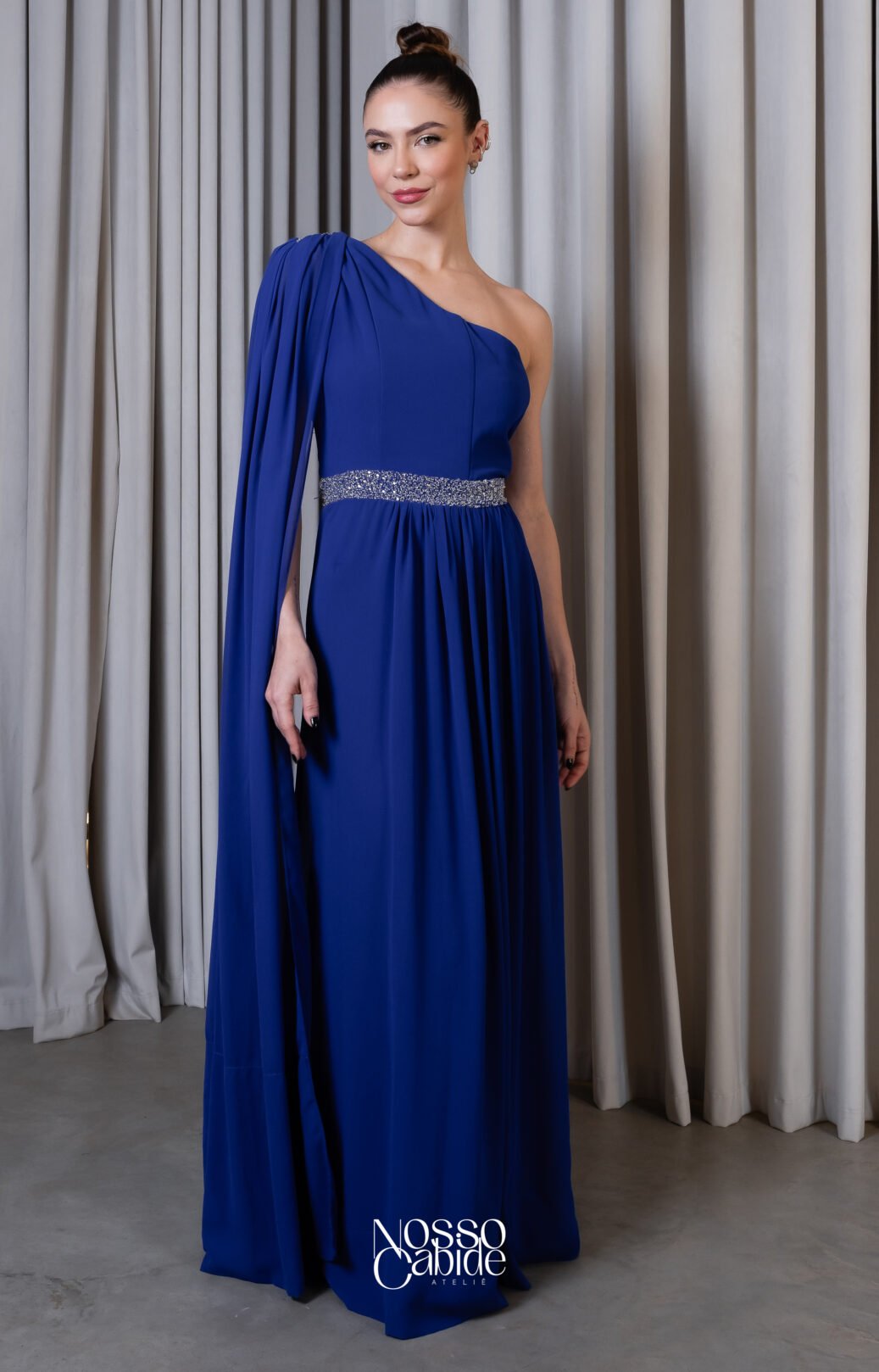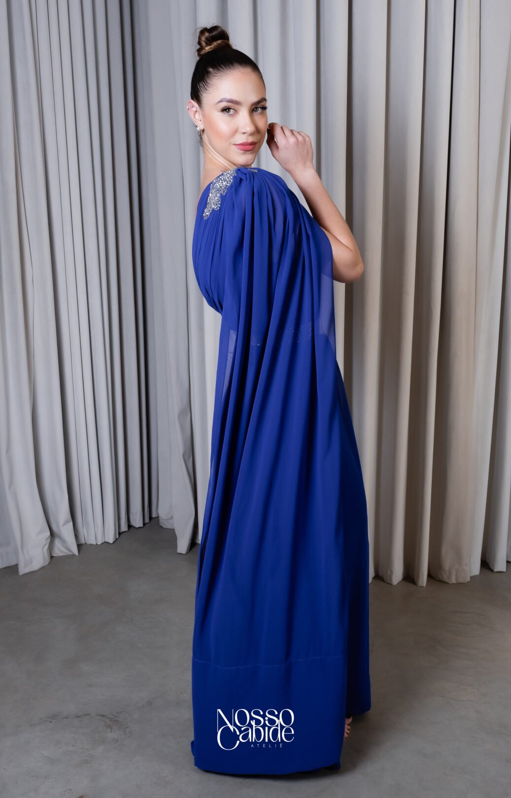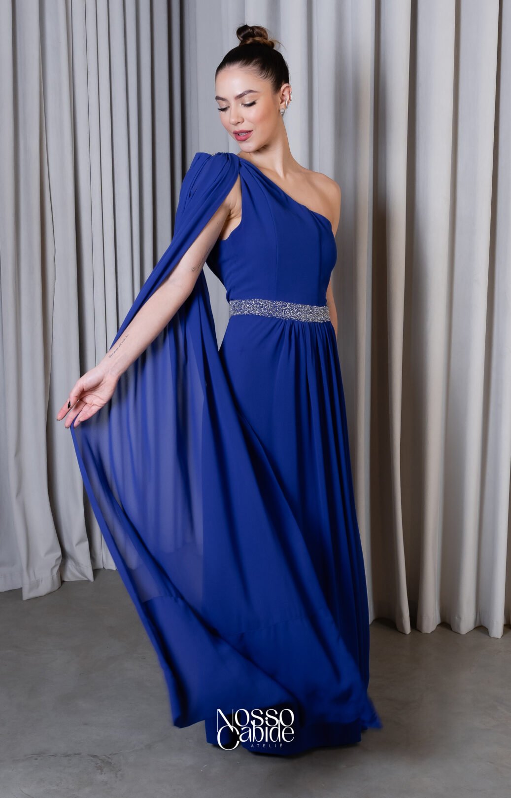 O corte impecável deste vestido realça a silhueta feminina, proporcionando um ajuste perfeito em todas as áreas do corpo. Longa e fluída acrescenta movimento e elegância a cada passo, enquanto valoriza os traços femininos.