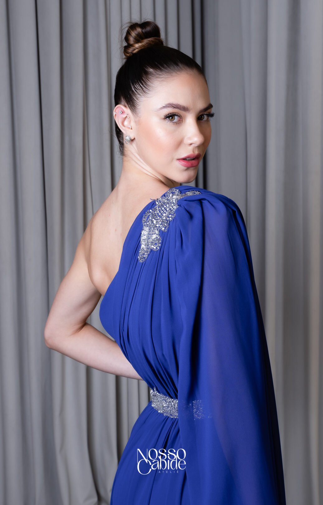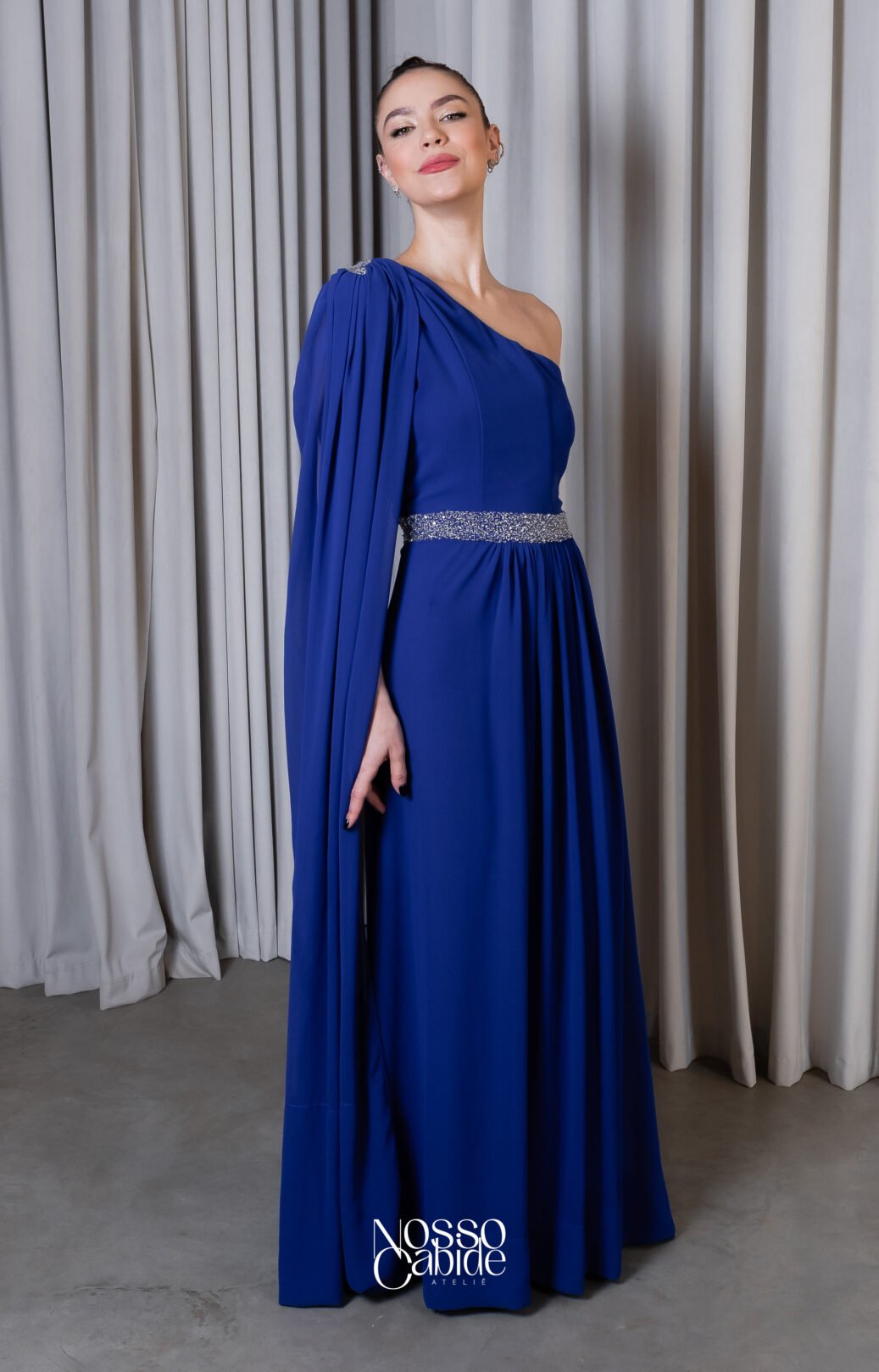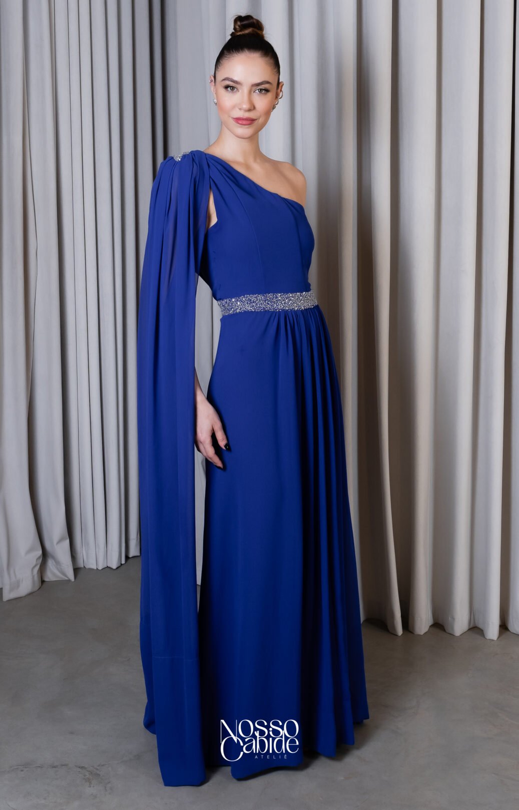 O corte impecável deste vestido realça a silhueta feminina, proporcionando um ajuste perfeito em todas as áreas do corpo. Longa e fluída acrescenta movimento e elegância a cada passo, enquanto valoriza os traços femininos.