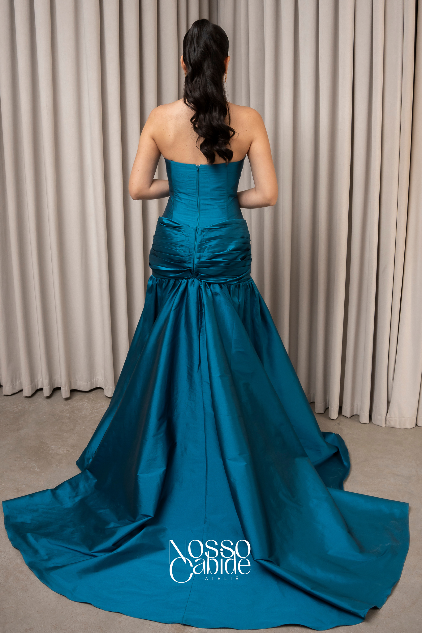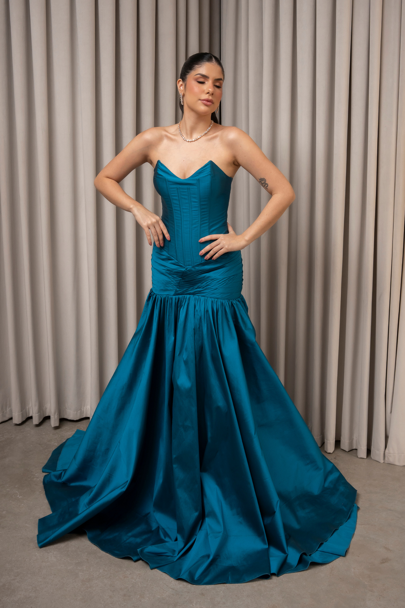 O corte impecável deste vestido realça a silhueta feminina, proporcionando um ajuste perfeito em todas as áreas do corpo. Longa e fluída acrescenta movimento e elegância a cada passo, enquanto valoriza os traços femininos.
