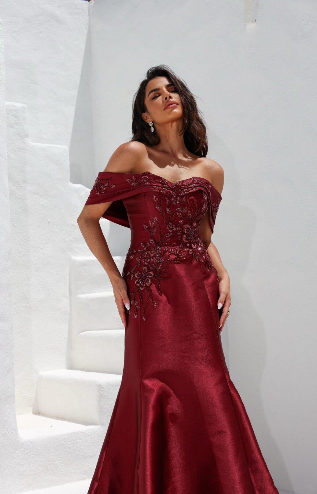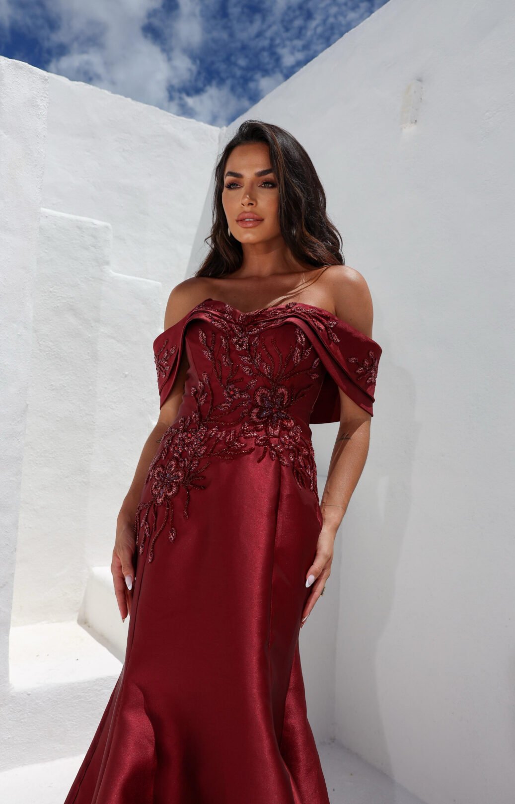 O corte impecável deste vestido realça a silhueta feminina, proporcionando um ajuste perfeito em todas as áreas do corpo. Longa e fluída acrescenta movimento e elegância a cada passo, enquanto valoriza os traços femininos.