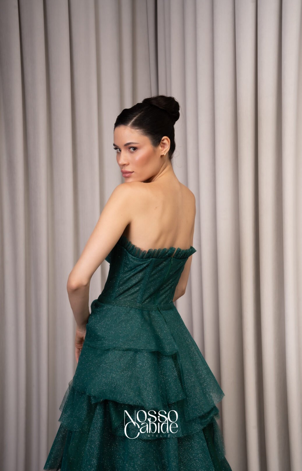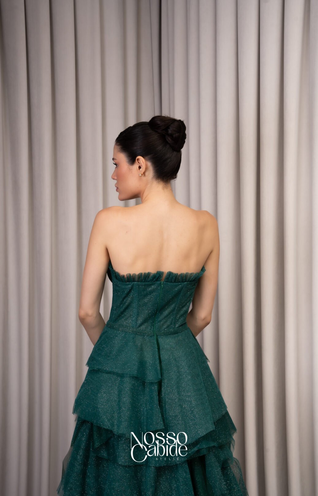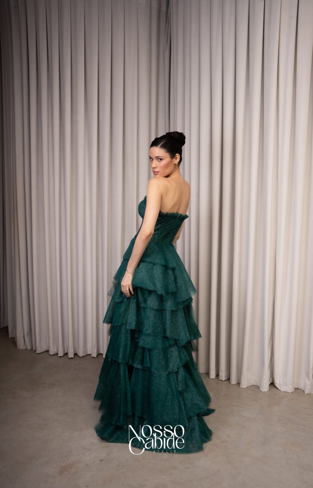 O corte impecável deste vestido realça a silhueta feminina, proporcionando um ajuste perfeito em todas as áreas do corpo. Longa e fluída acrescenta movimento e elegância a cada passo, enquanto valoriza os traços femininos.