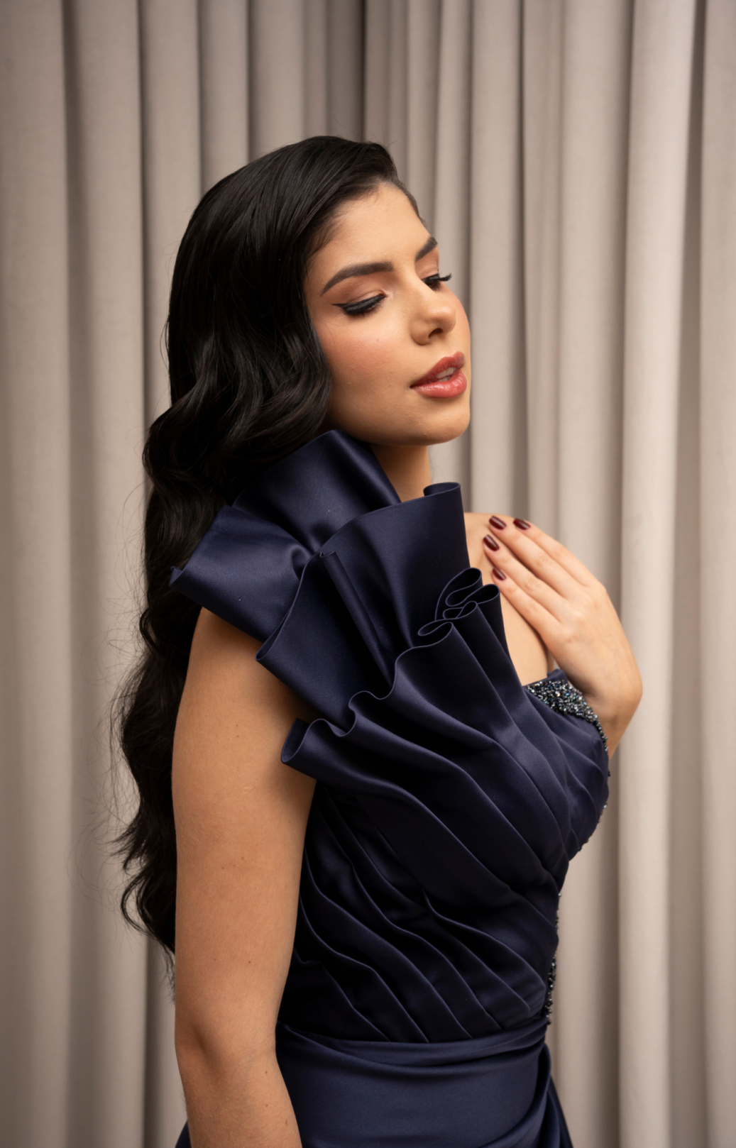 O corte impecável deste vestido realça a silhueta feminina, proporcionando um ajuste perfeito em todas as áreas do corpo. Longa e fluída acrescenta movimento e elegância a cada passo, enquanto valoriza os traços femininos.