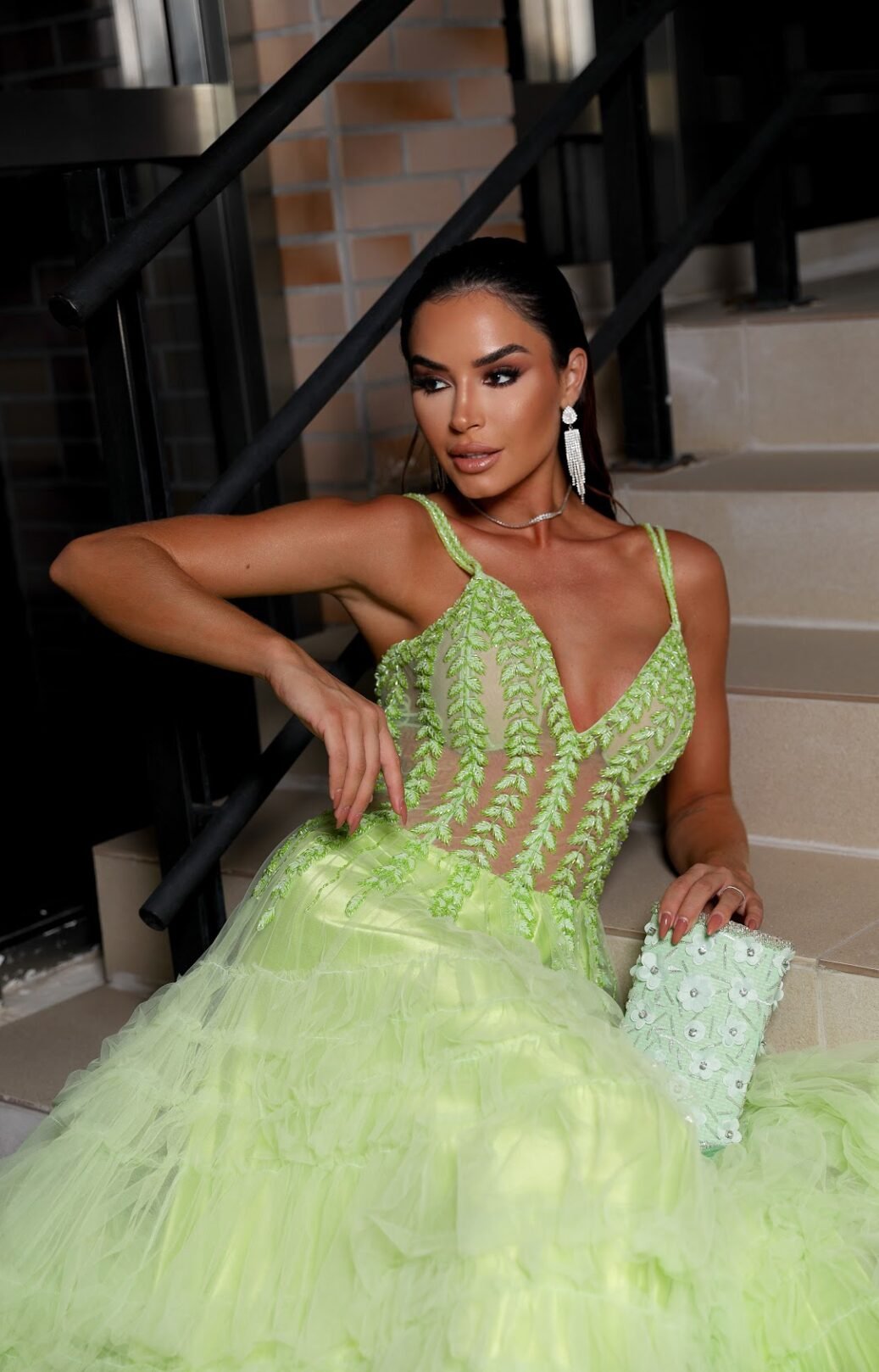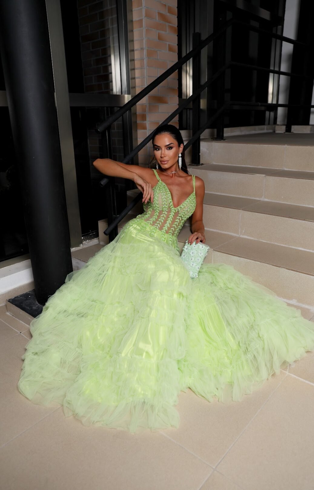 O corte impecável deste vestido realça a silhueta feminina, proporcionando um ajuste perfeito em todas as áreas do corpo. Longa e fluída acrescenta movimento e elegância a cada passo, enquanto valoriza os traços femininos.