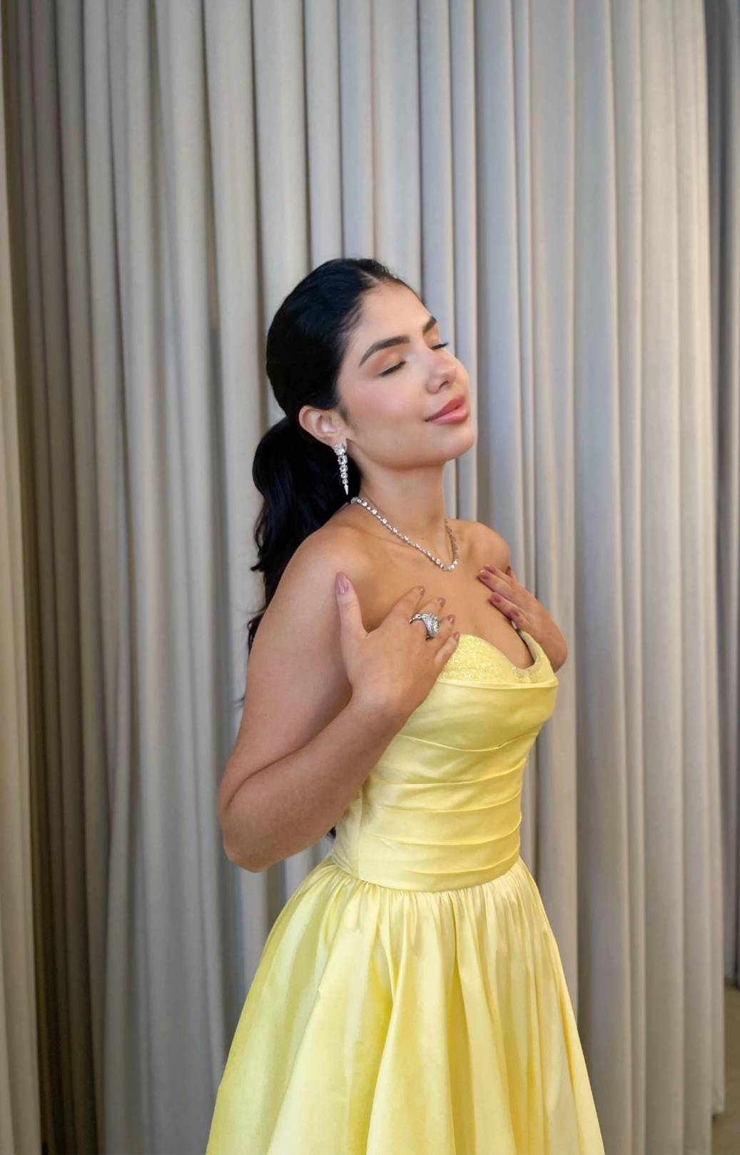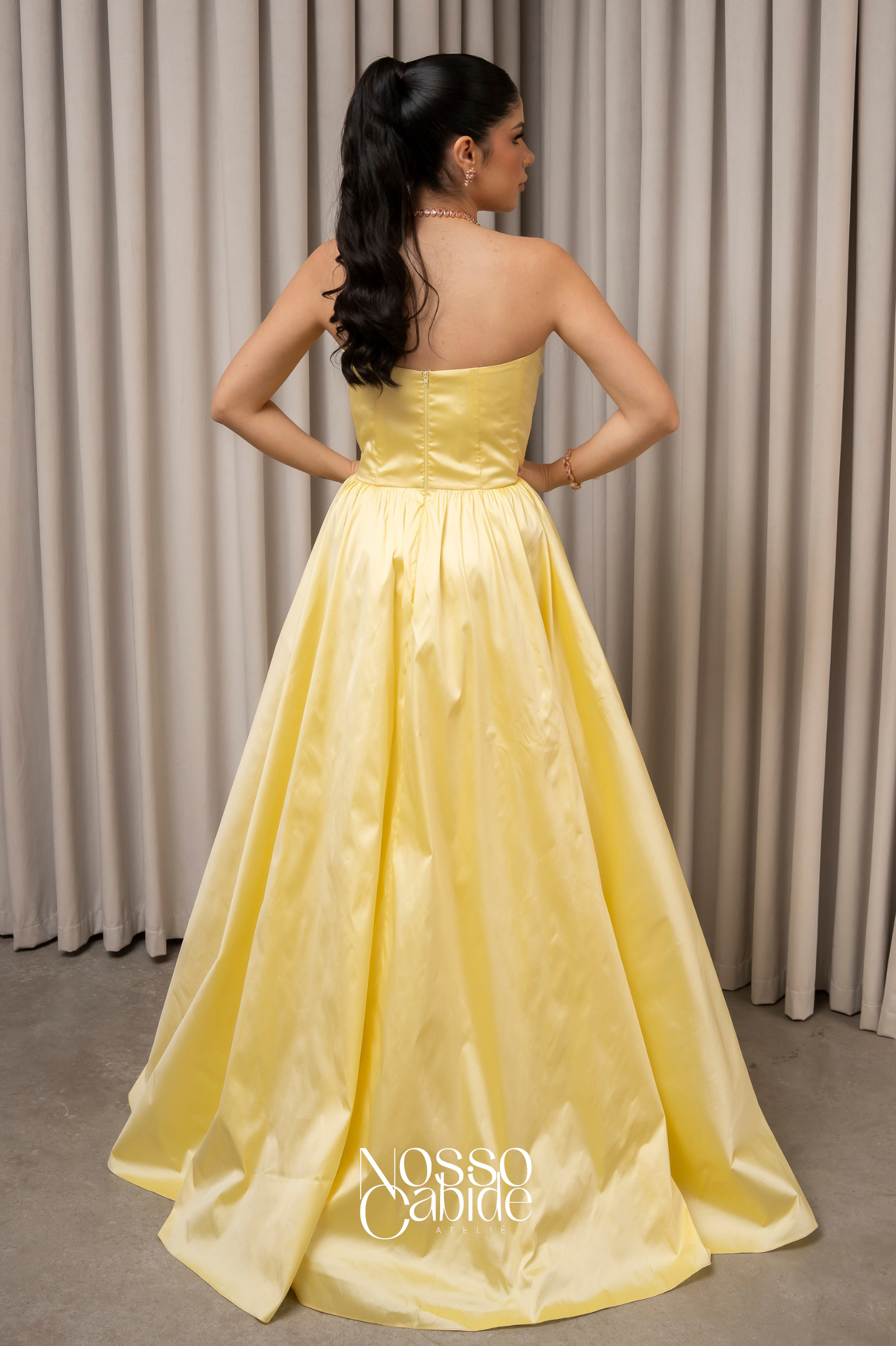O corte impecável deste vestido realça a silhueta feminina, proporcionando um ajuste perfeito em todas as áreas do corpo. Longa e fluída acrescenta movimento e elegância a cada passo, enquanto valoriza os traços femininos.
