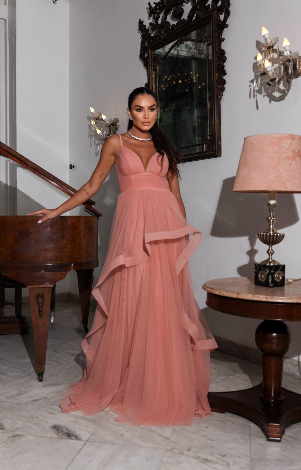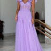 O corte impecável deste vestido realça a silhueta feminina, proporcionando um ajuste perfeito em todas as áreas do corpo. Longa e fluída acrescenta movimento e elegância a cada passo, enquanto valoriza os traços femininos.
