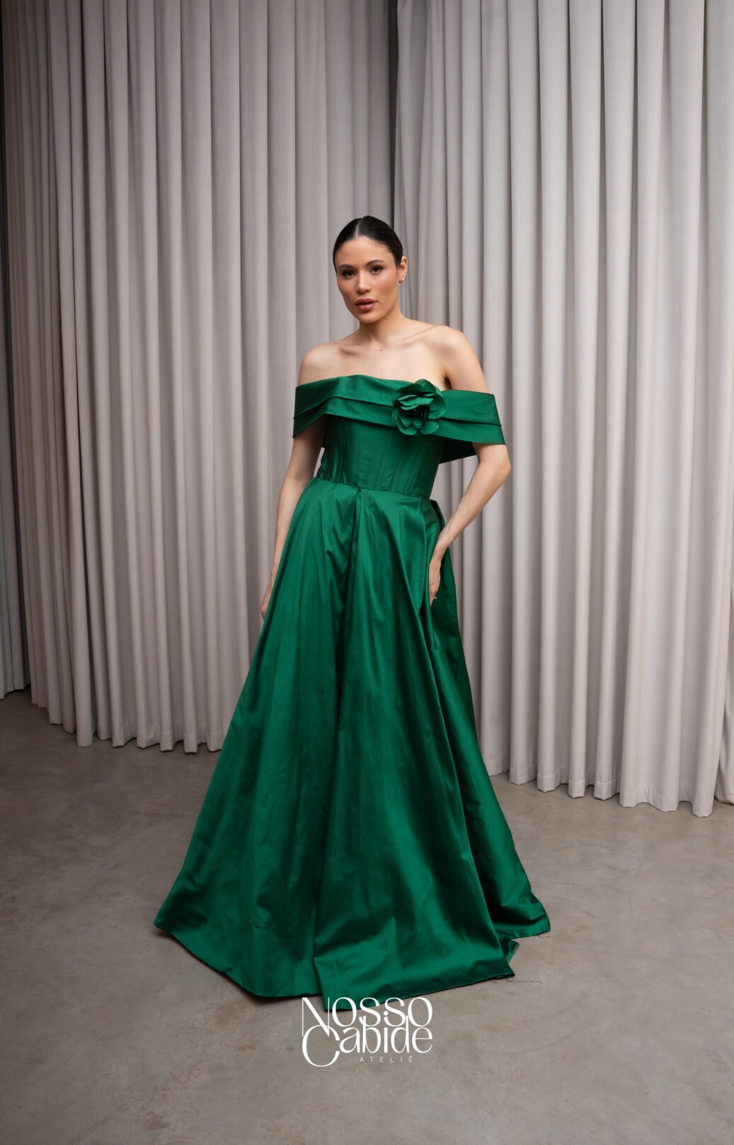 O corte impecável deste vestido realça a silhueta feminina, proporcionando um ajuste perfeito em todas as áreas do corpo. Longa e fluída acrescenta movimento e elegância a cada passo, enquanto valoriza os traços femininos.