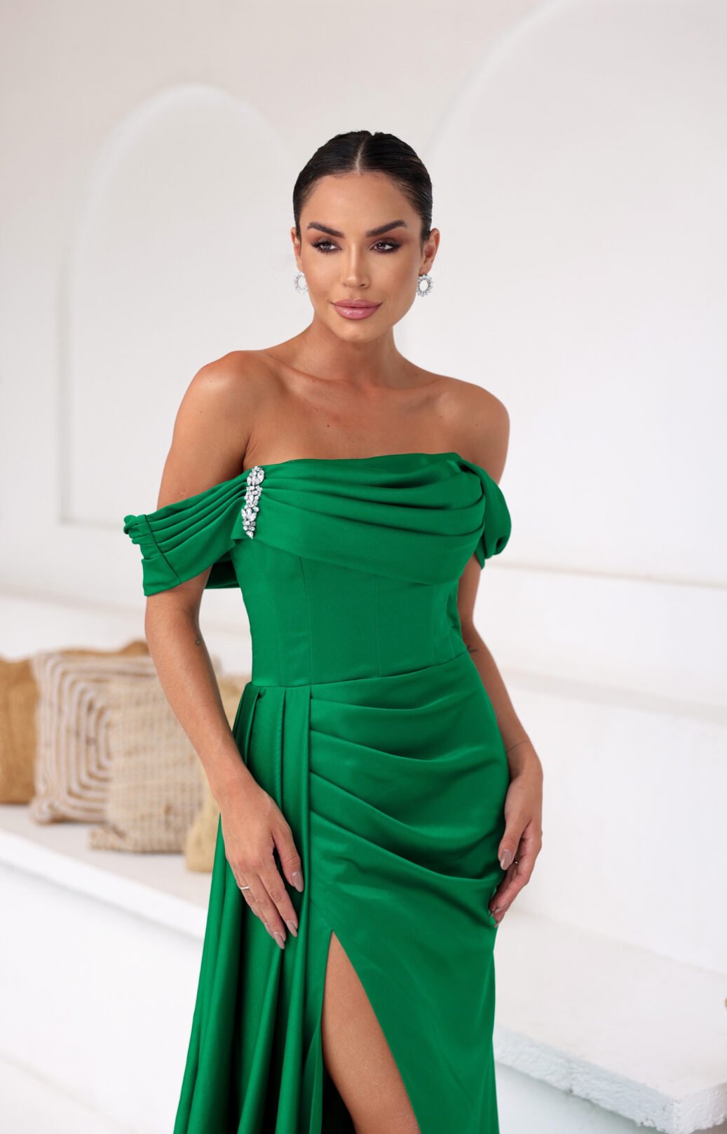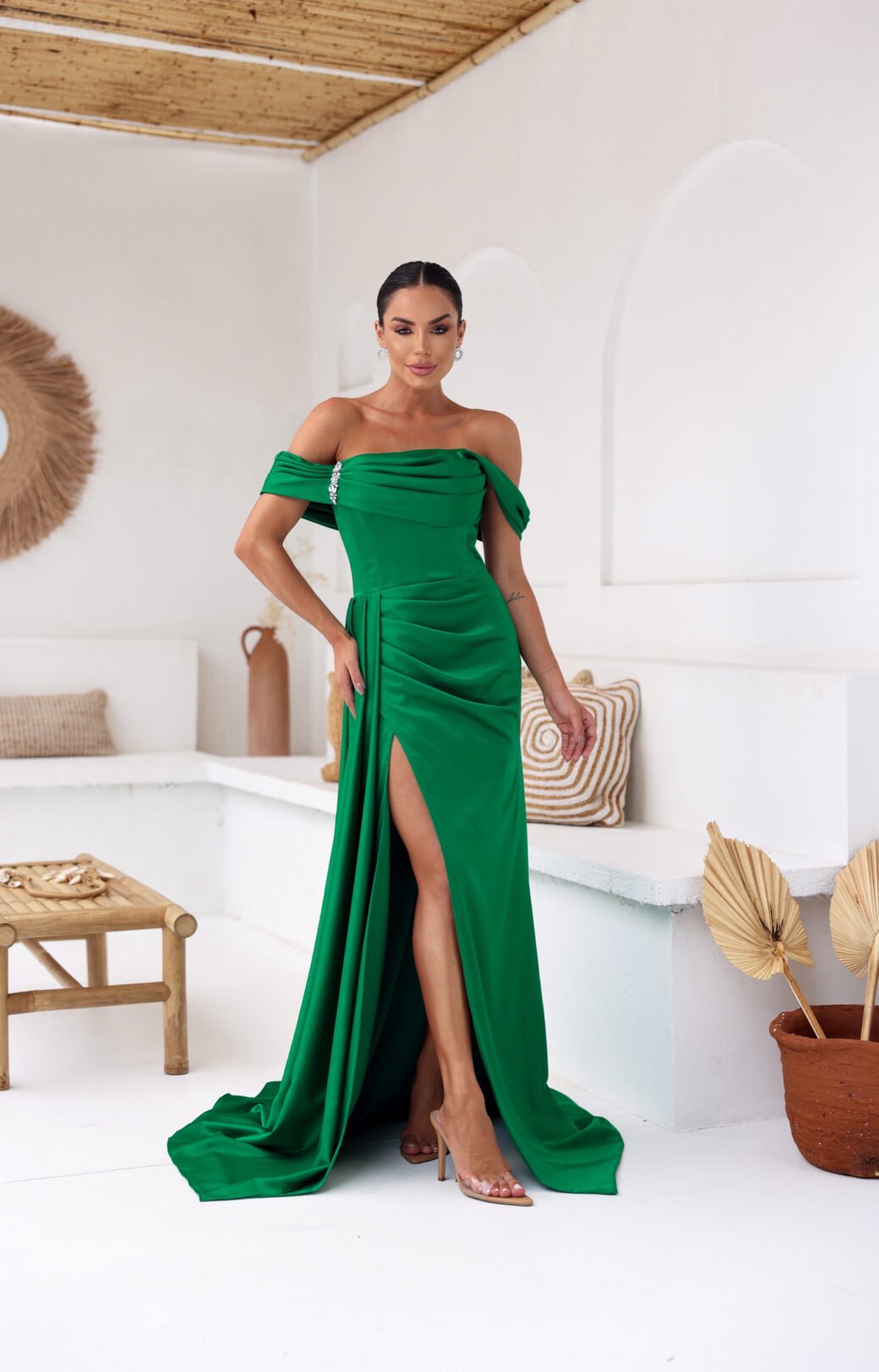 O corte impecável deste vestido realça a silhueta feminina, proporcionando um ajuste perfeito em todas as áreas do corpo. Longa e fluída acrescenta movimento e elegância a cada passo, enquanto valoriza os traços femininos.