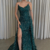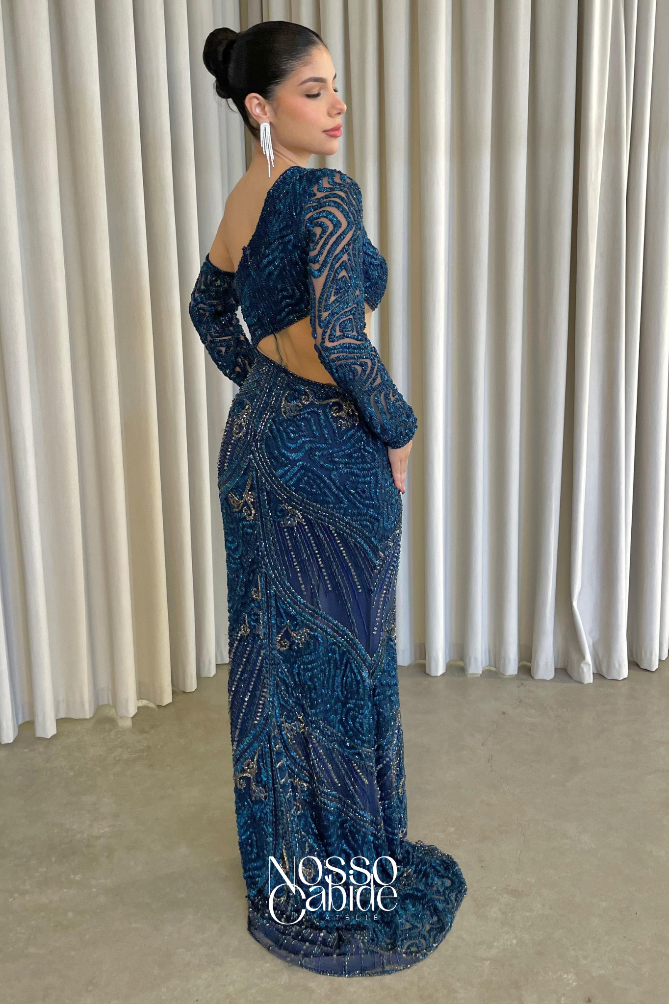 O corte impecável deste vestido realça a silhueta feminina, proporcionando um ajuste perfeito em todas as áreas do corpo. Longa e fluída acrescenta movimento e elegância a cada passo, enquanto valoriza os traços femininos.