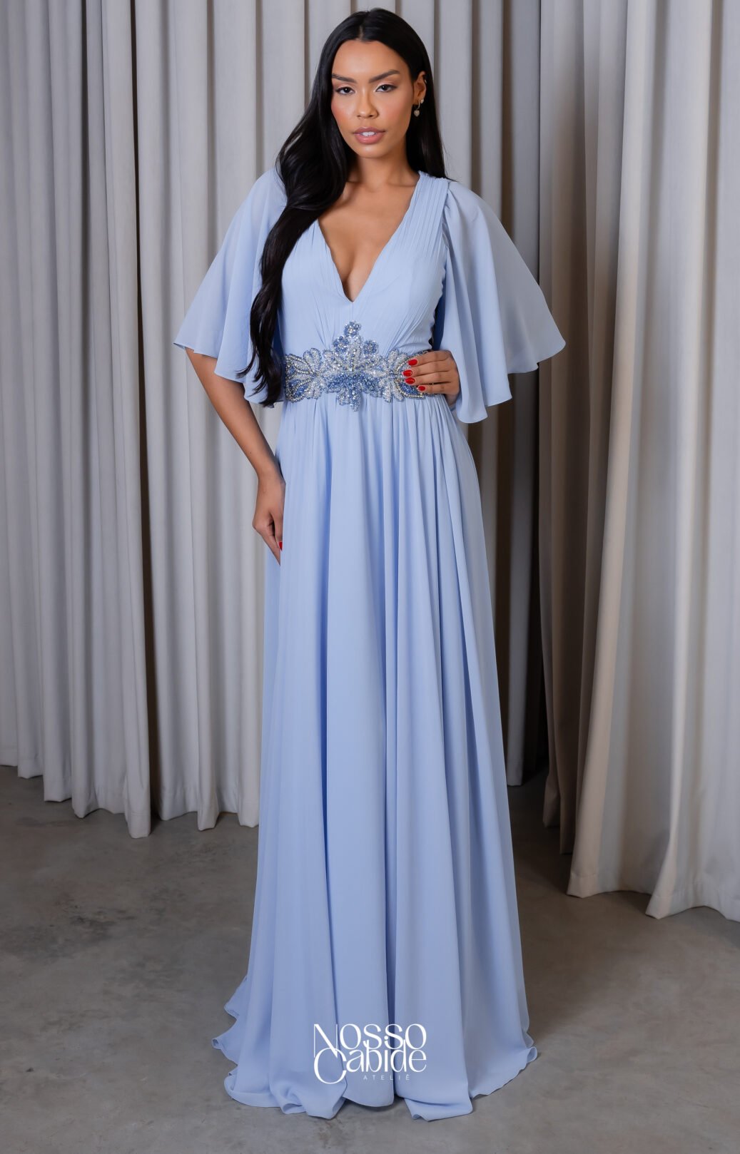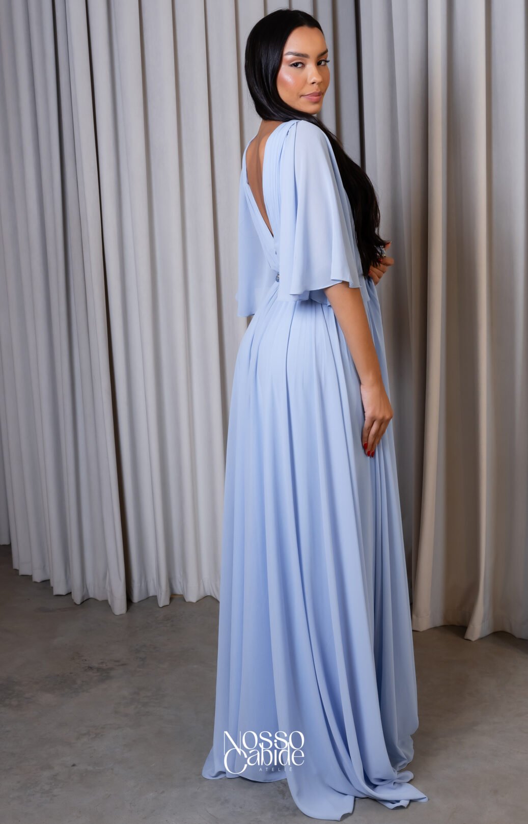 O corte impecável deste vestido realça a silhueta feminina, proporcionando um ajuste perfeito em todas as áreas do corpo. Longa e fluída acrescenta movimento e elegância a cada passo, enquanto valoriza os traços femininos.