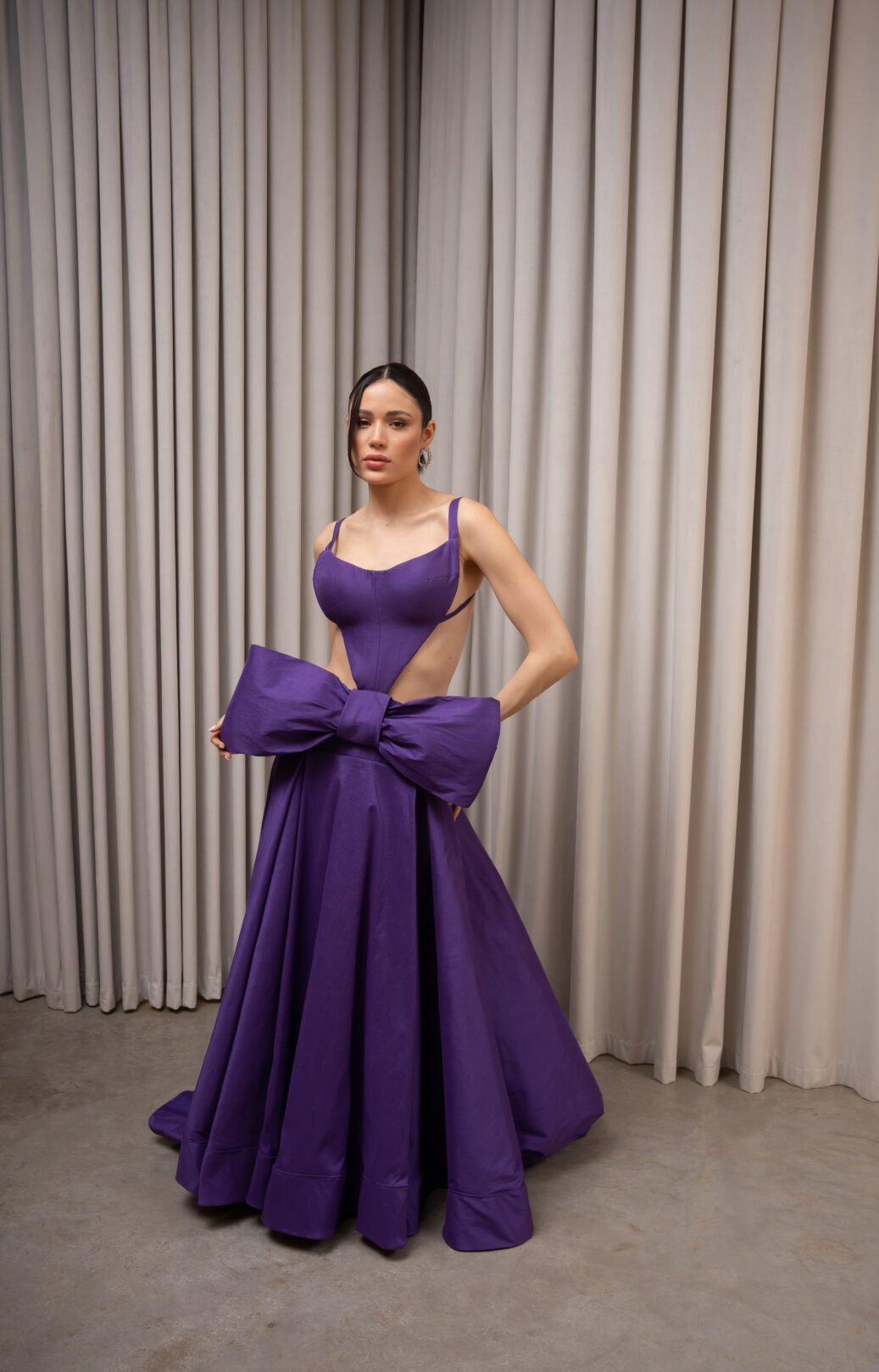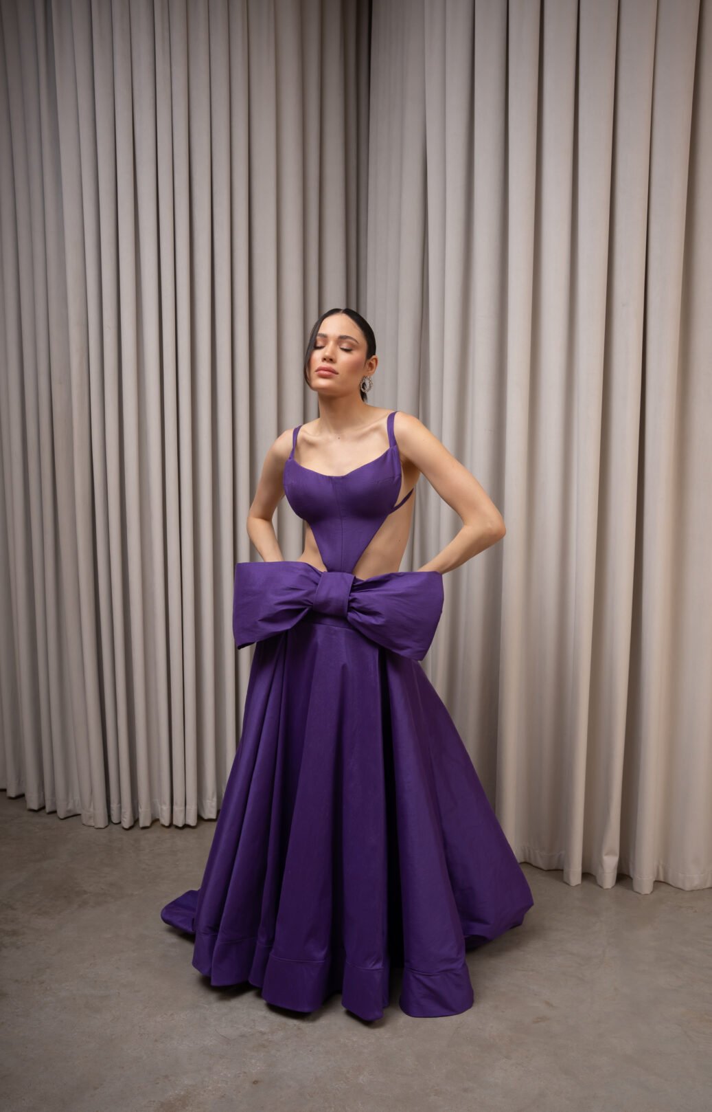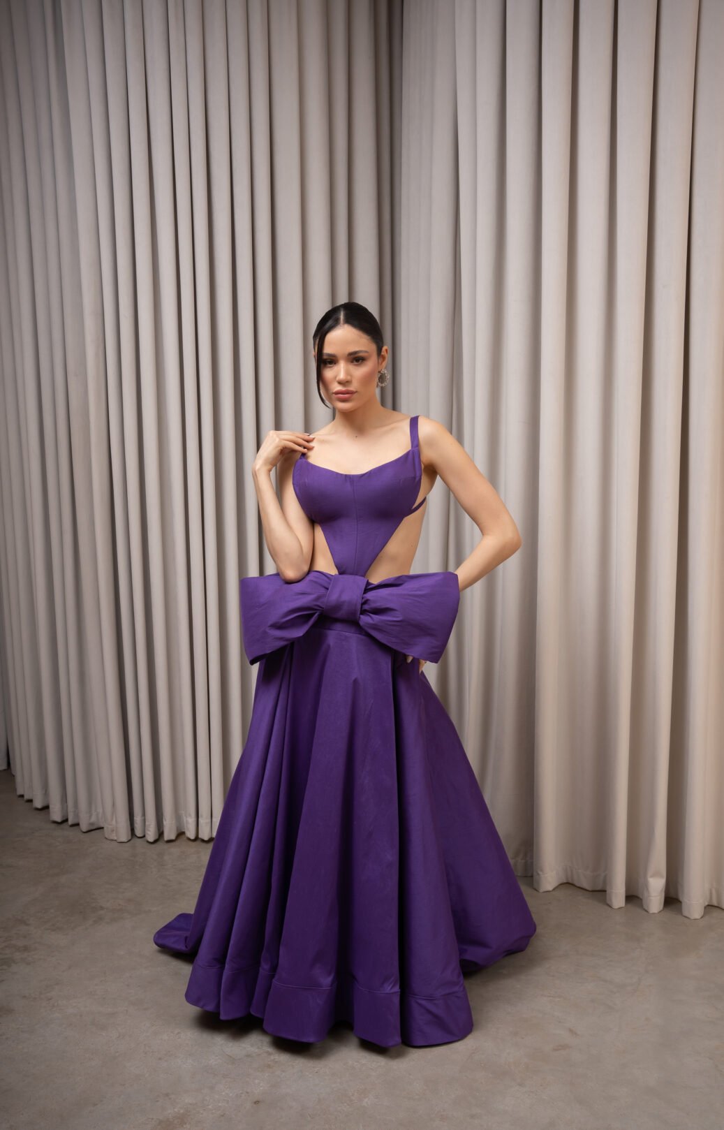 O corte impecável deste vestido realça a silhueta feminina, proporcionando um ajuste perfeito em todas as áreas do corpo. Longa e fluída acrescenta movimento e elegância a cada passo, enquanto valoriza os traços femininos.