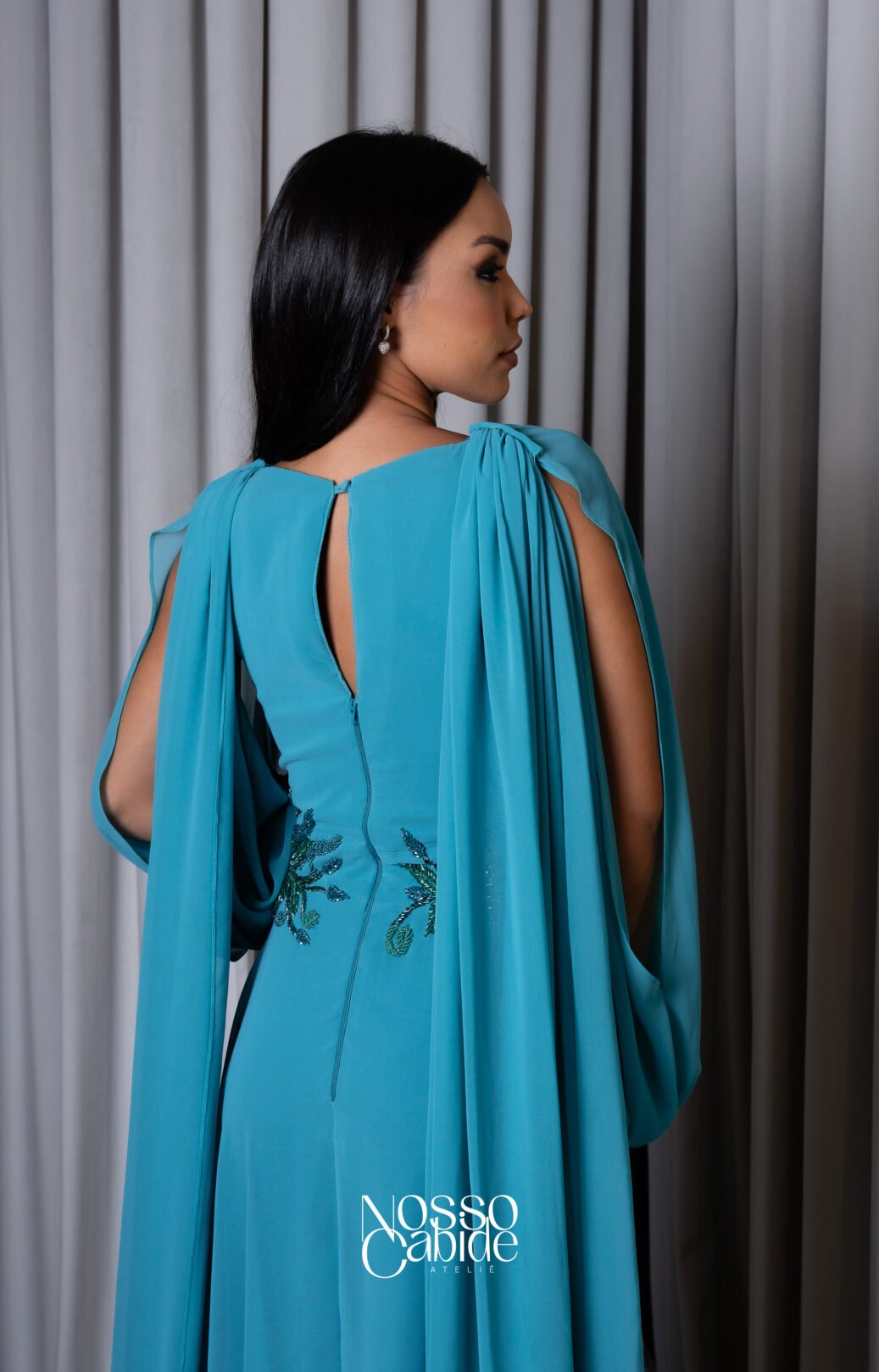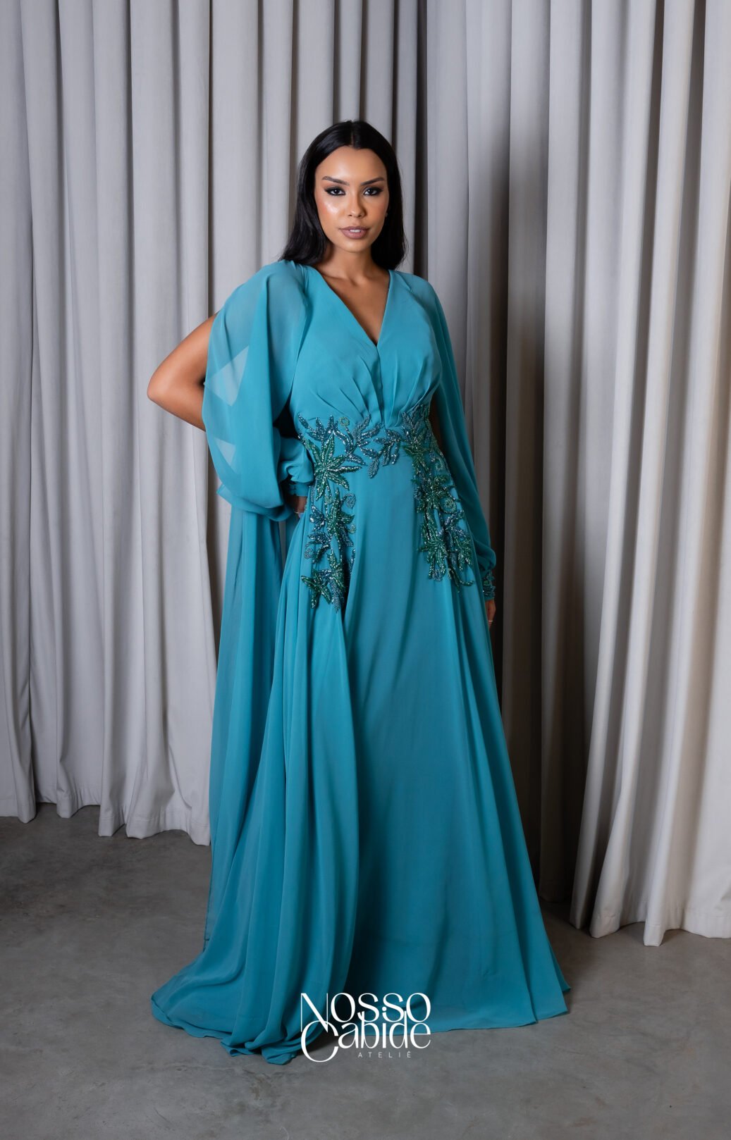 O corte impecável deste vestido realça a silhueta feminina, proporcionando um ajuste perfeito em todas as áreas do corpo. Longa e fluída acrescenta movimento e elegância a cada passo, enquanto valoriza os traços femininos.