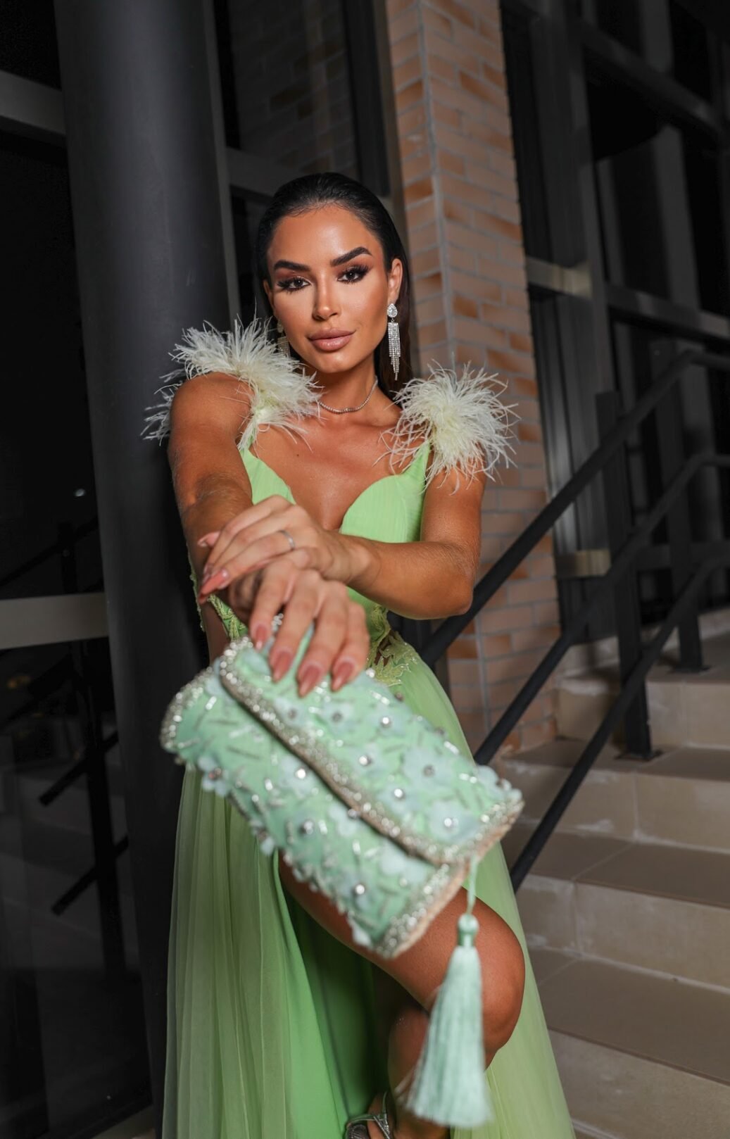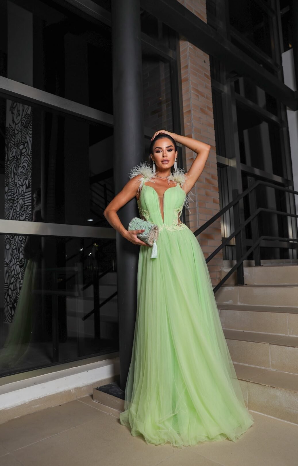 O corte impecável deste vestido realça a silhueta feminina, proporcionando um ajuste perfeito em todas as áreas do corpo. Longa e fluída acrescenta movimento e elegância a cada passo, enquanto valoriza os traços femininos.