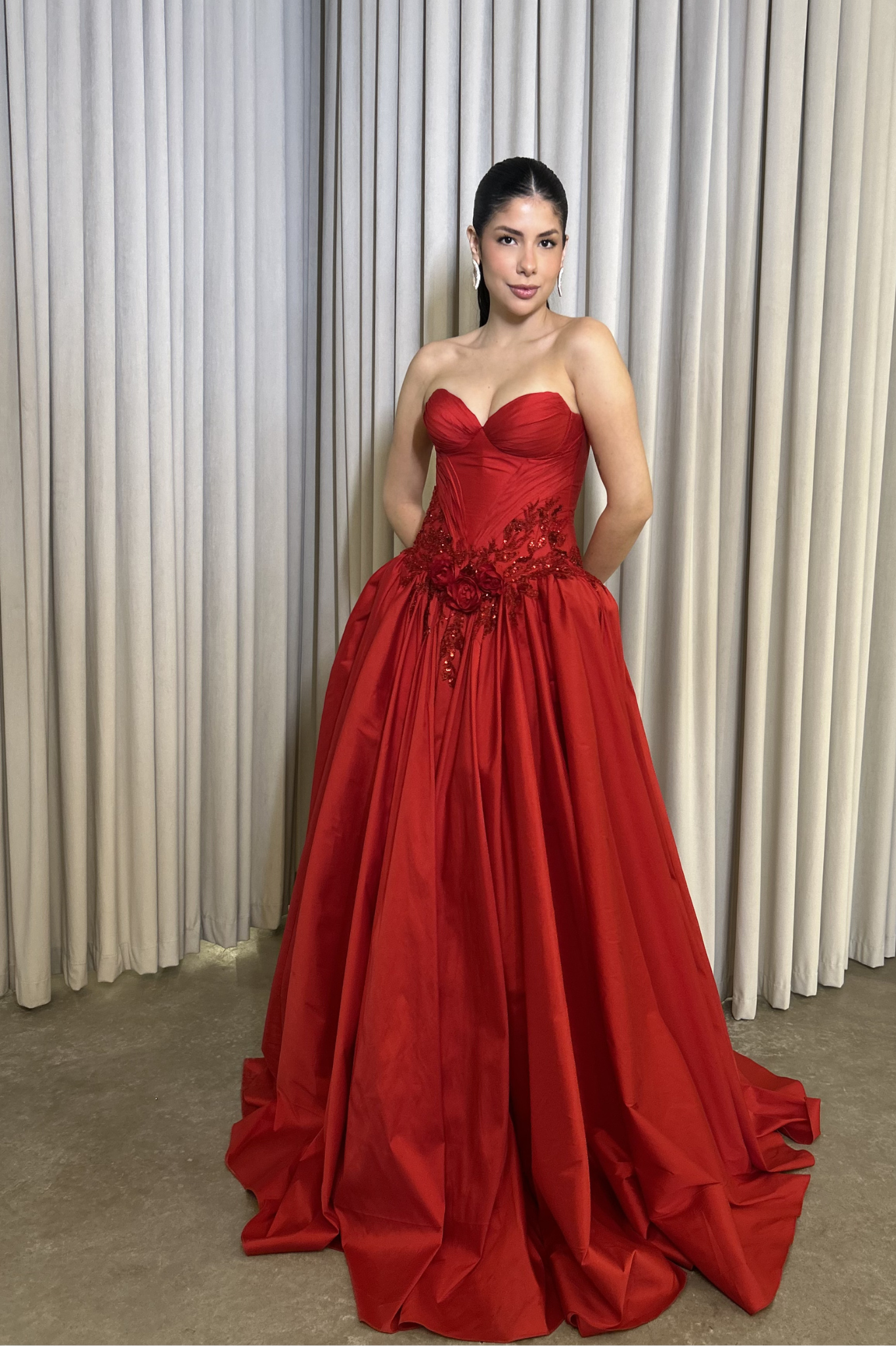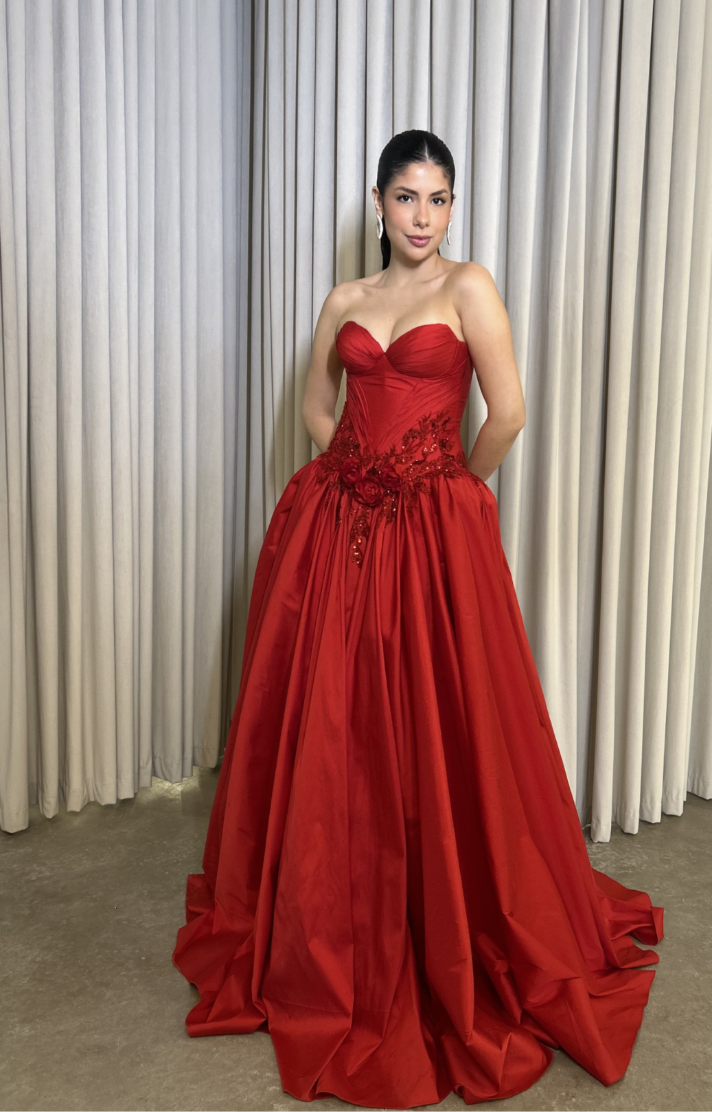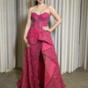 O corte impecável deste vestido realça a silhueta feminina, proporcionando um ajuste perfeito em todas as áreas do corpo. Longa e fluída acrescenta movimento e elegância a cada passo, enquanto valoriza os traços femininos.