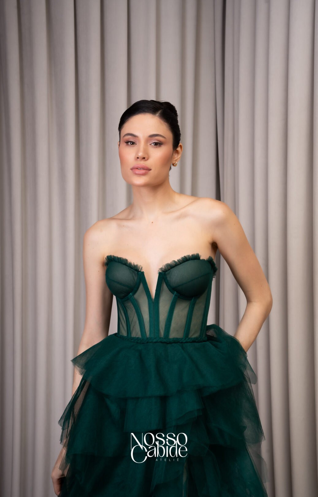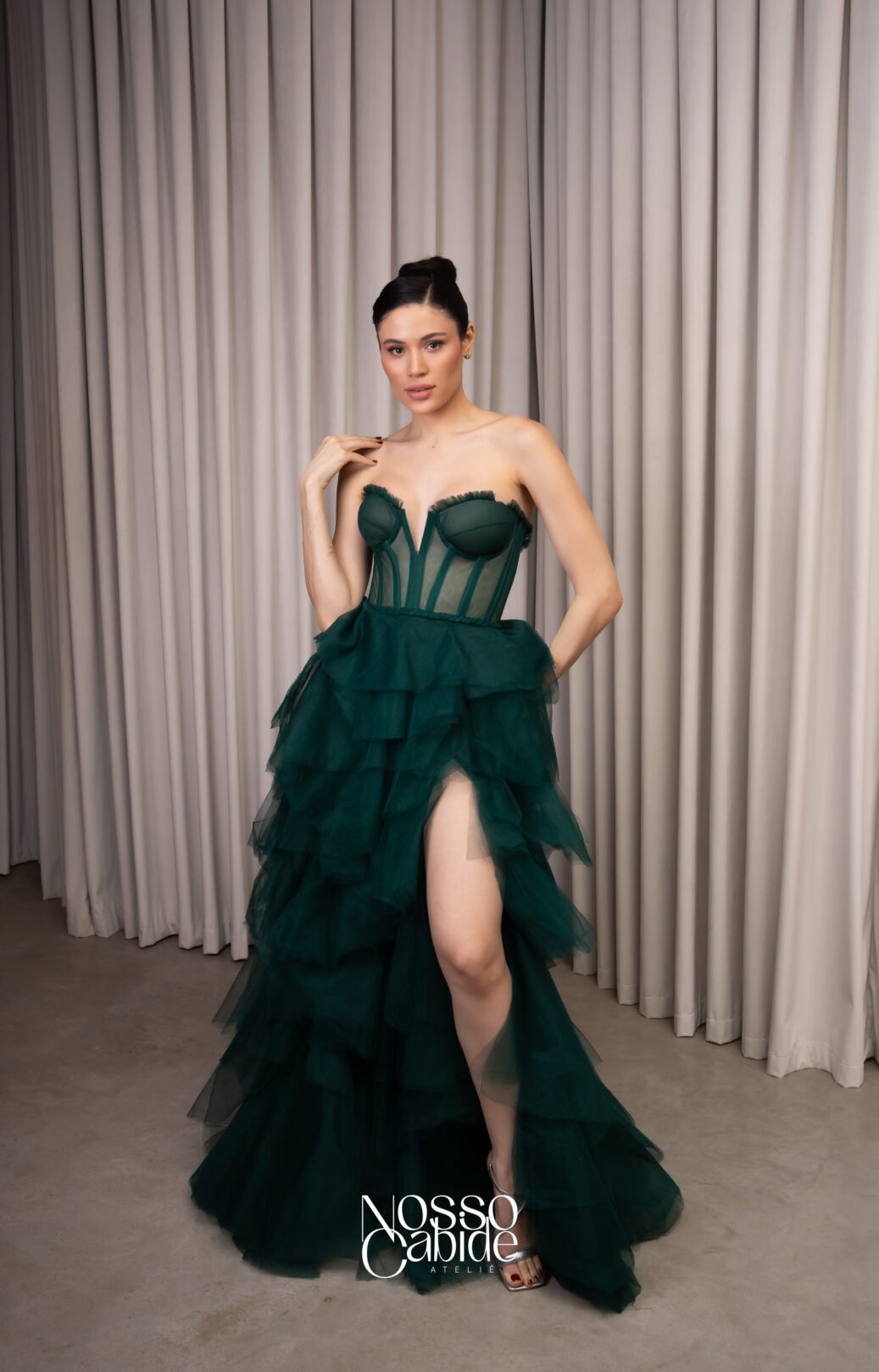 O corte impecável deste vestido realça a silhueta feminina, proporcionando um ajuste perfeito em todas as áreas do corpo. Longa e fluída acrescenta movimento e elegância a cada passo, enquanto valoriza os traços femininos.