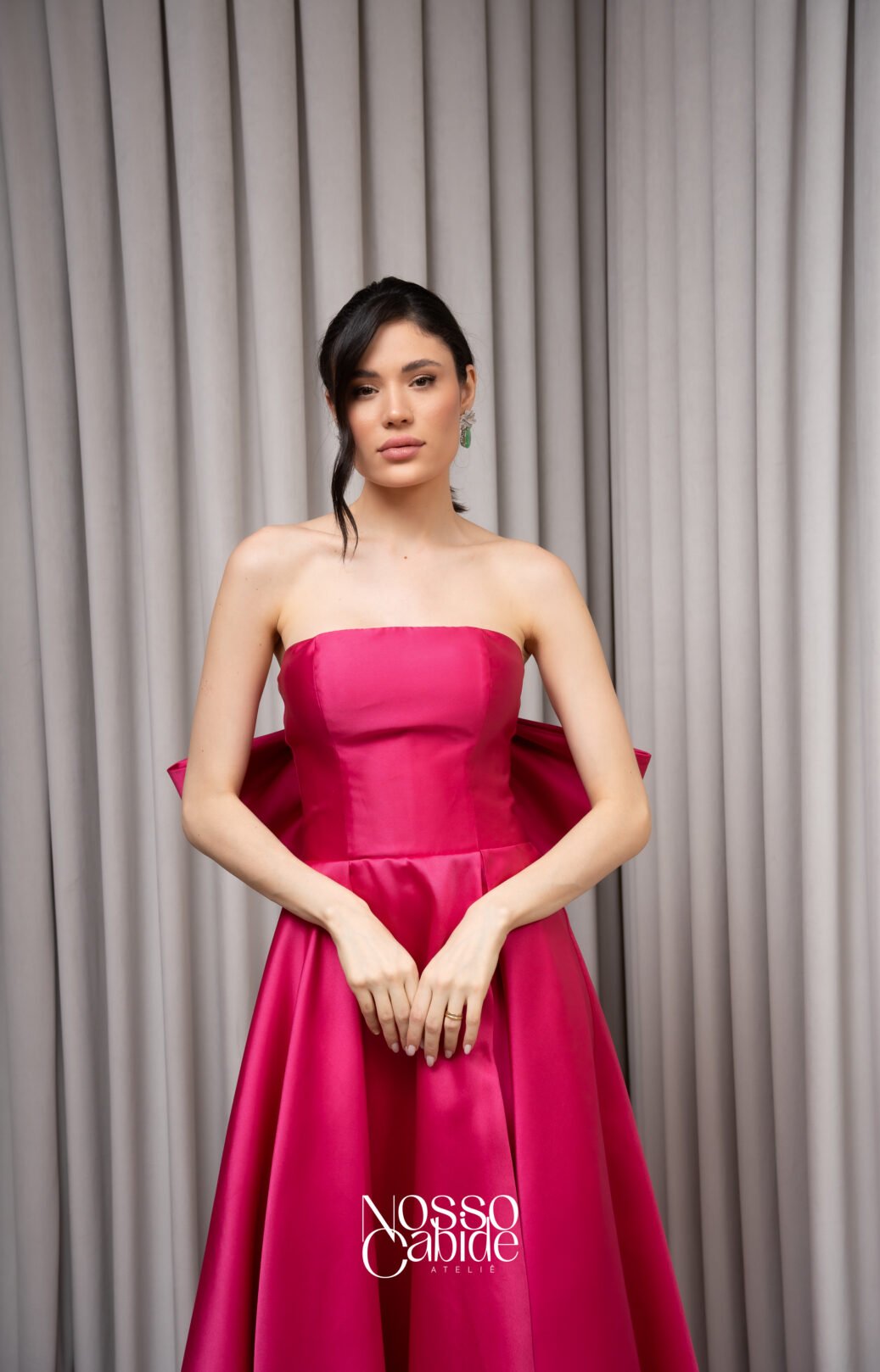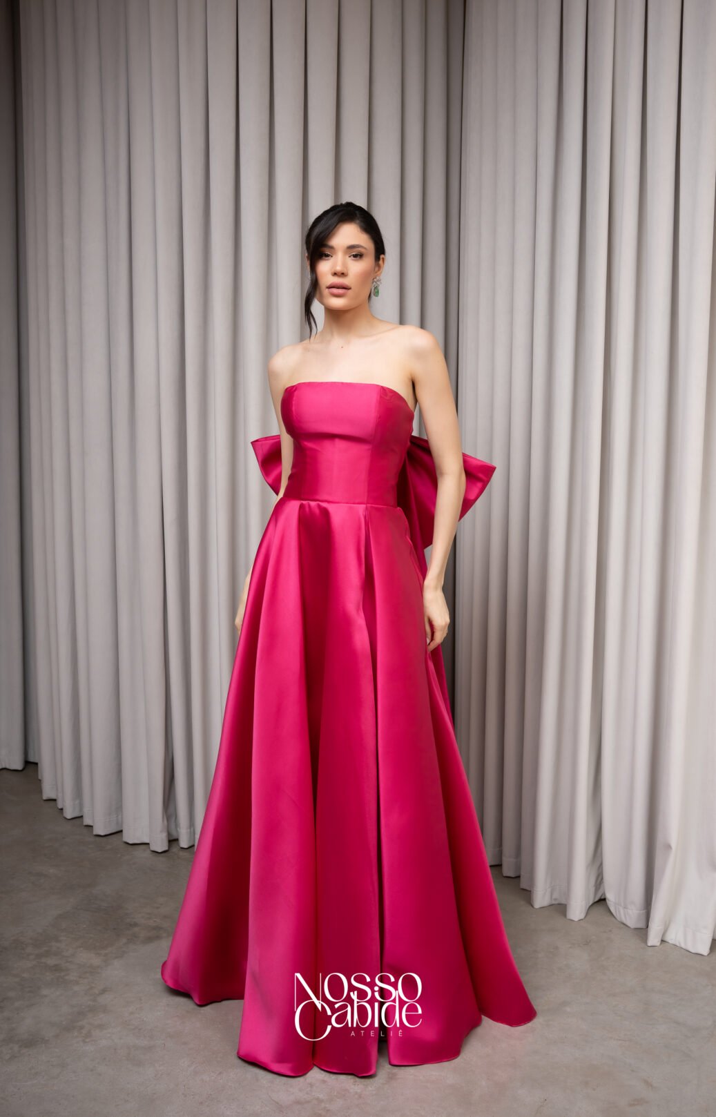 O corte impecável deste vestido realça a silhueta feminina, proporcionando um ajuste perfeito em todas as áreas do corpo. Longa e fluída acrescenta movimento e elegância a cada passo, enquanto valoriza os traços femininos.