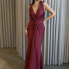 O corte impecável deste vestido realça a silhueta feminina, proporcionando um ajuste perfeito em todas as áreas do corpo. Longa e fluída acrescenta movimento e elegância a cada passo, enquanto valoriza os traços femininos.