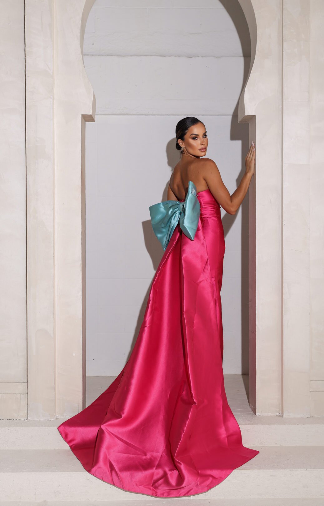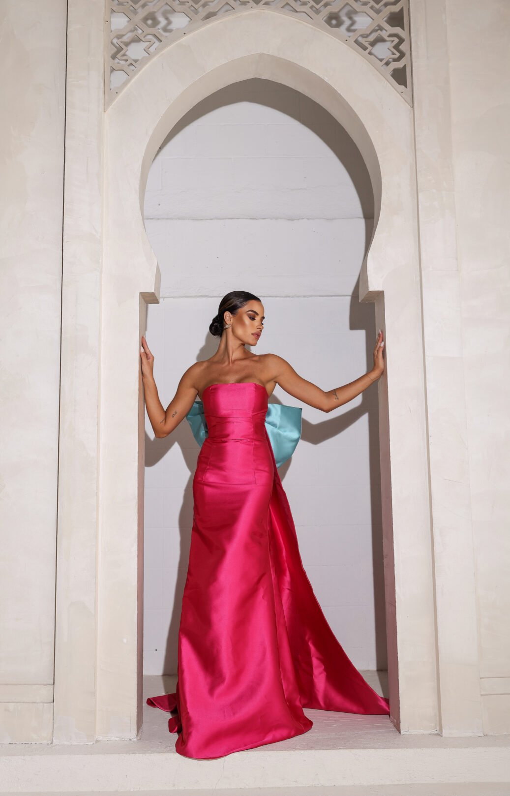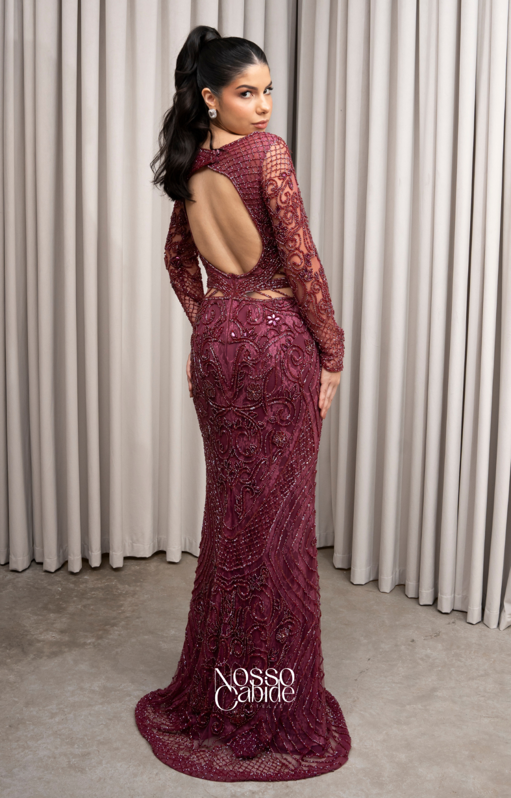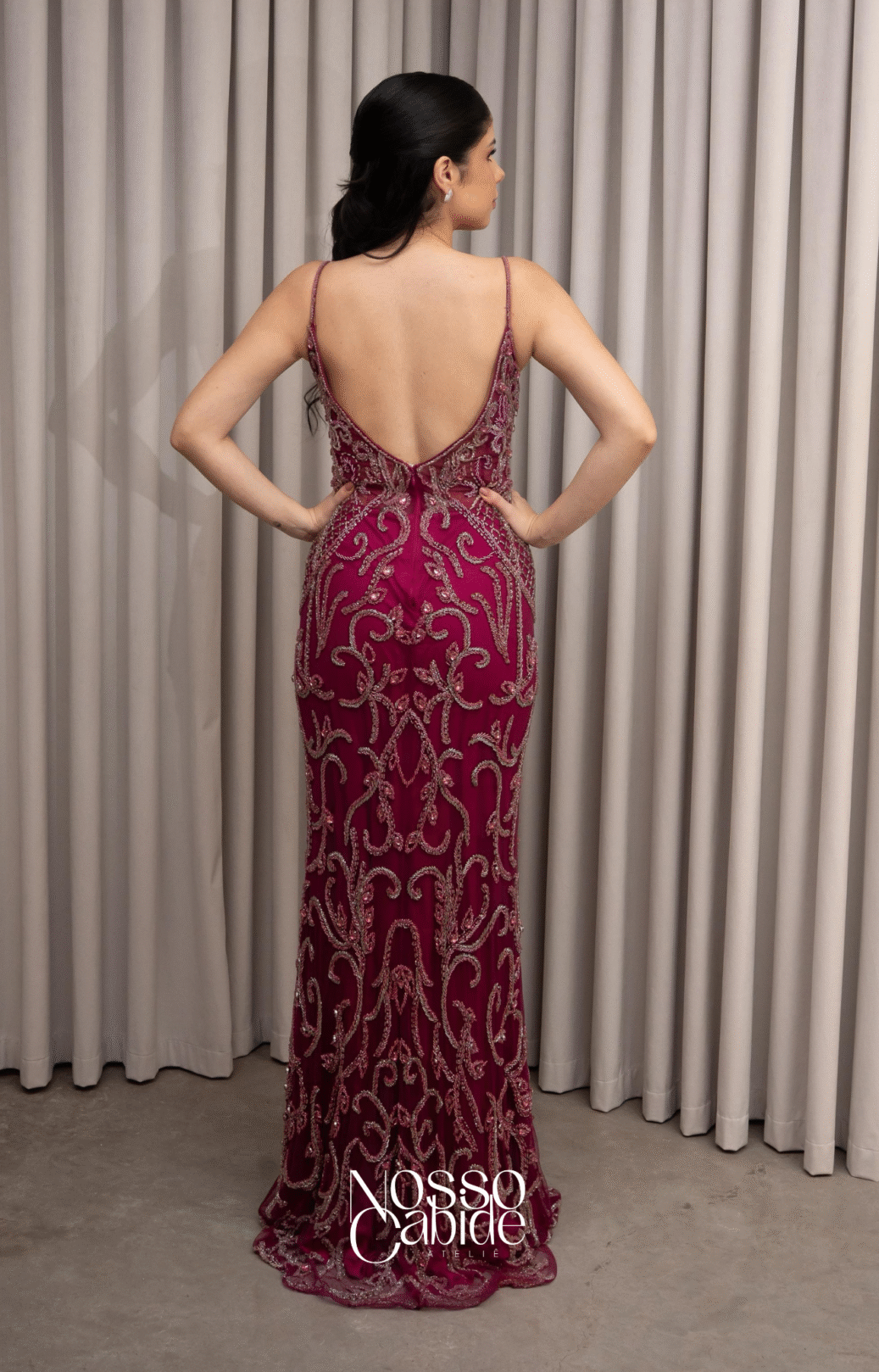O corte impecável deste vestido realça a silhueta feminina, proporcionando um ajuste perfeito em todas as áreas do corpo. Longa e fluída acrescenta movimento e elegância a cada passo, enquanto valoriza os traços femininos.
