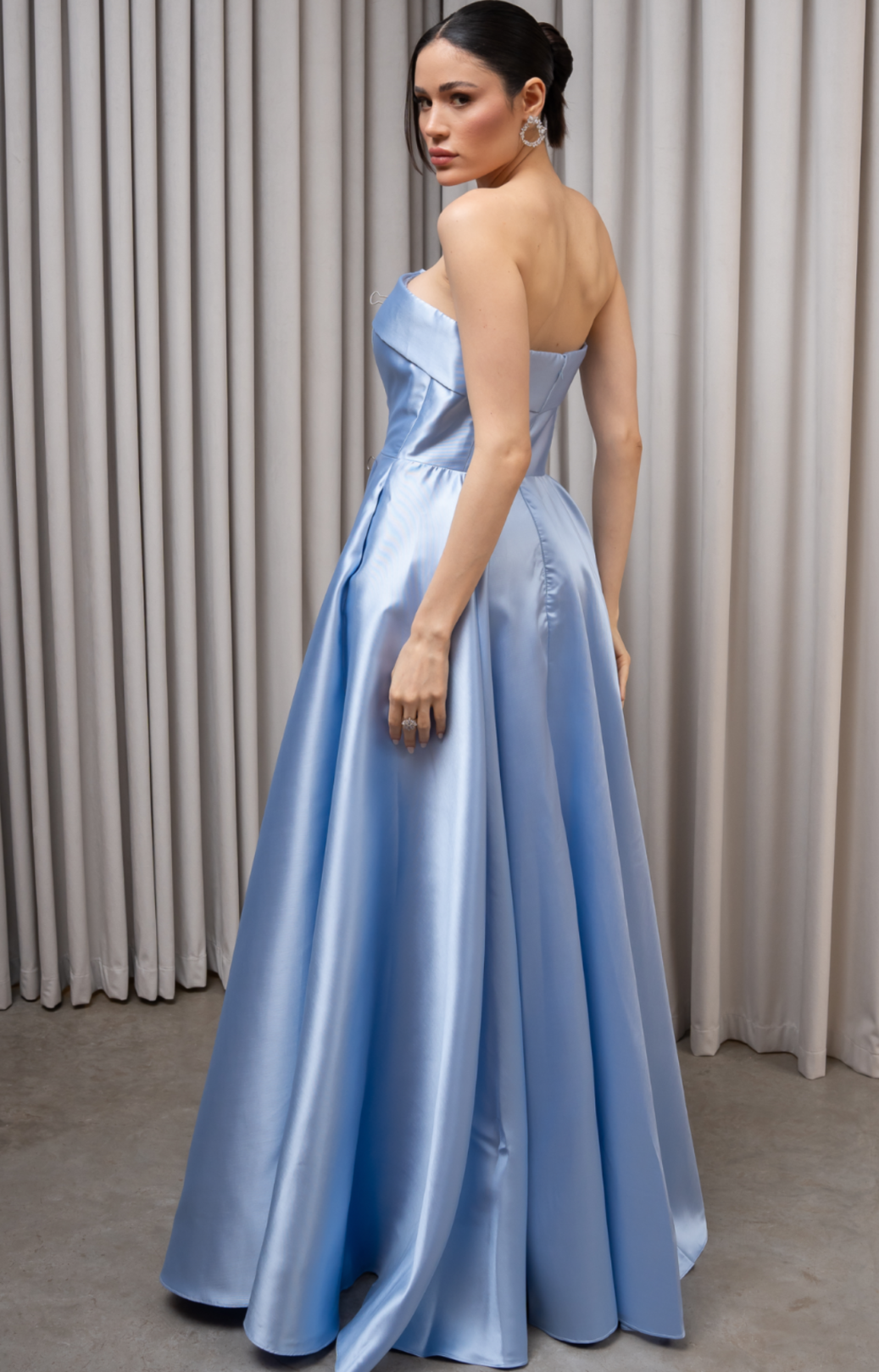 O corte impecável deste vestido realça a silhueta feminina, proporcionando um ajuste perfeito em todas as áreas do corpo. Longa e fluída acrescenta movimento e elegância a cada passo, enquanto valoriza os traços femininos.