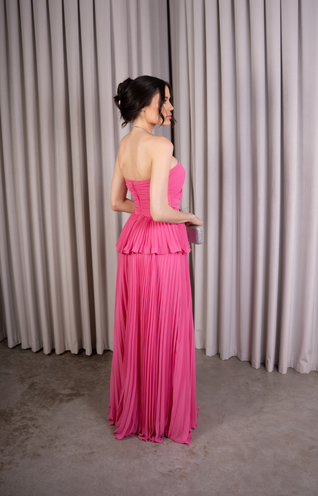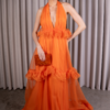 O corte impecável deste vestido realça a silhueta feminina, proporcionando um ajuste perfeito em todas as áreas do corpo. Longa e fluída acrescenta movimento e elegância a cada passo, enquanto valoriza os traços femininos.
