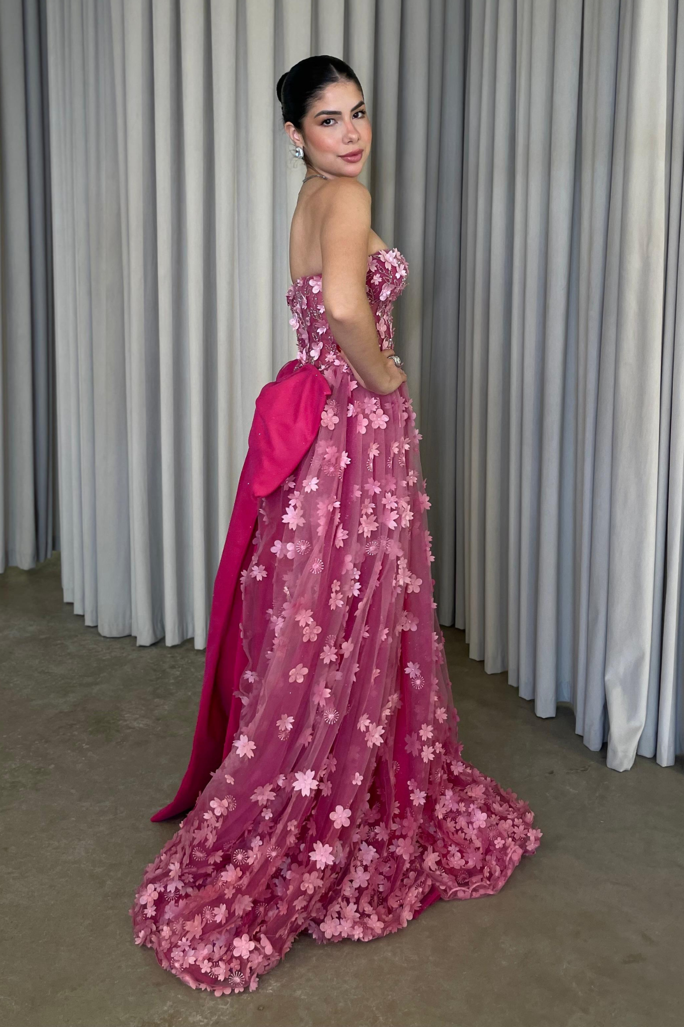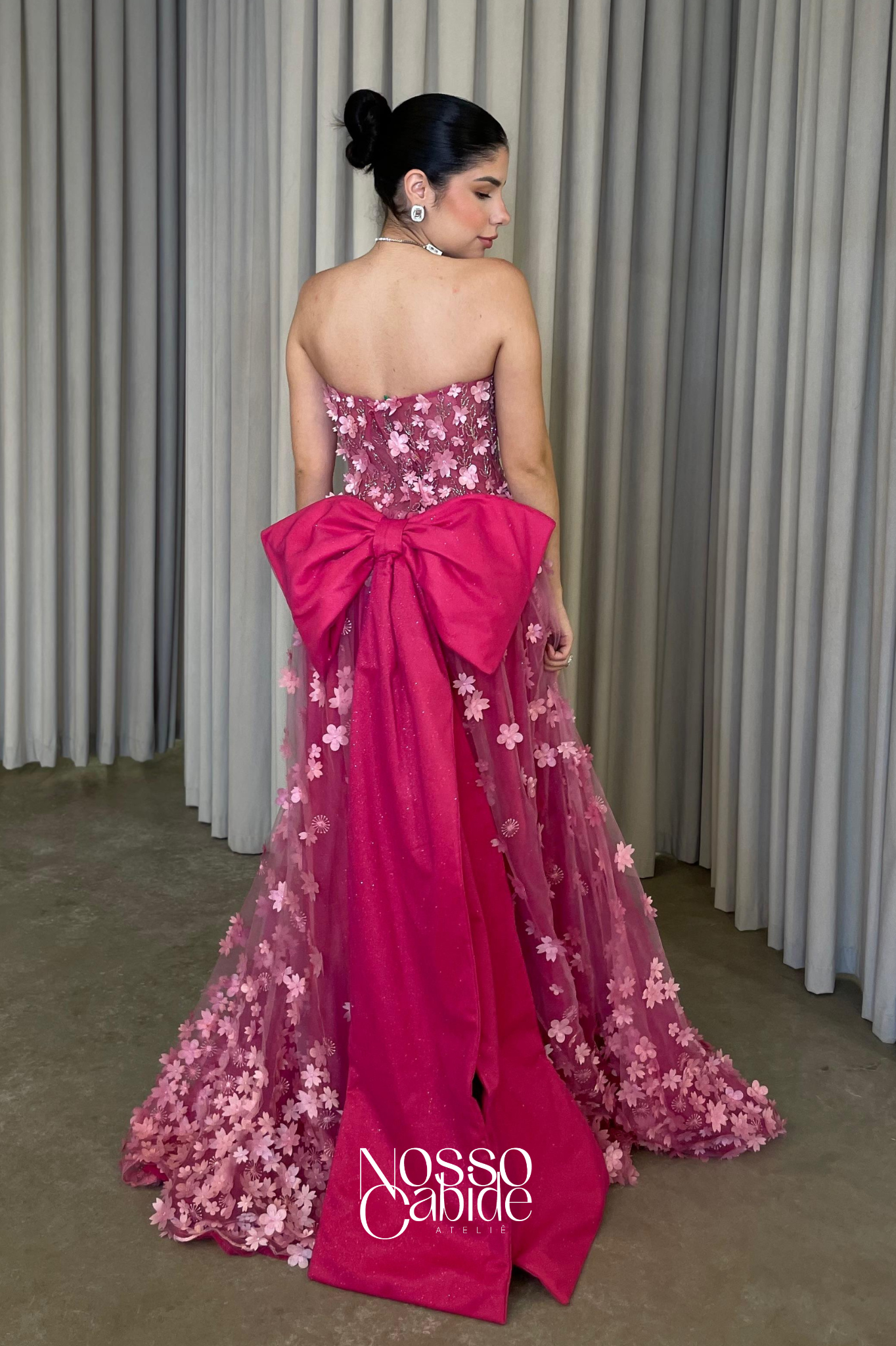 O corte impecável deste vestido realça a silhueta feminina, proporcionando um ajuste perfeito em todas as áreas do corpo. Longa e fluída acrescenta movimento e elegância a cada passo, enquanto valoriza os traços femininos.