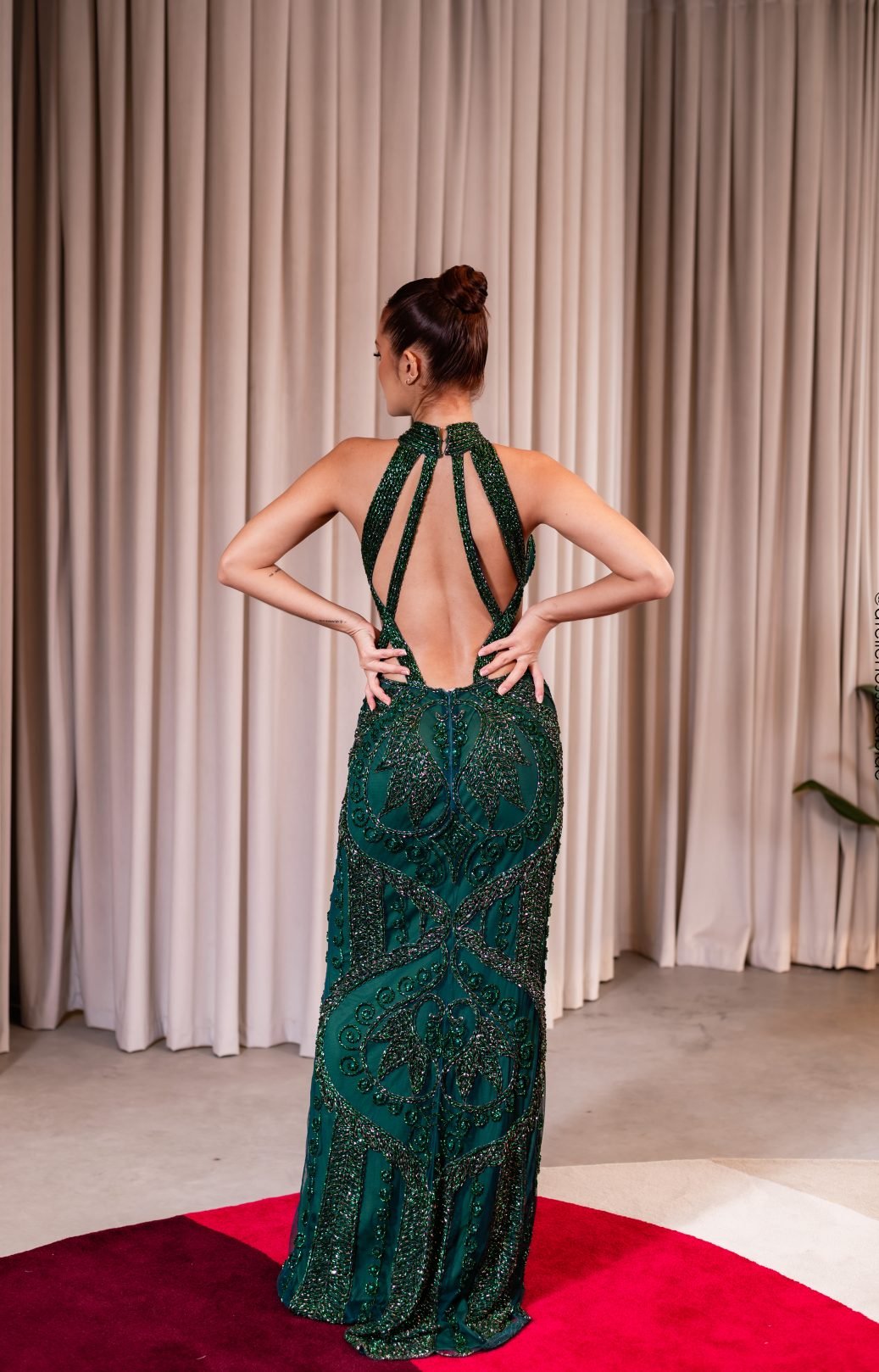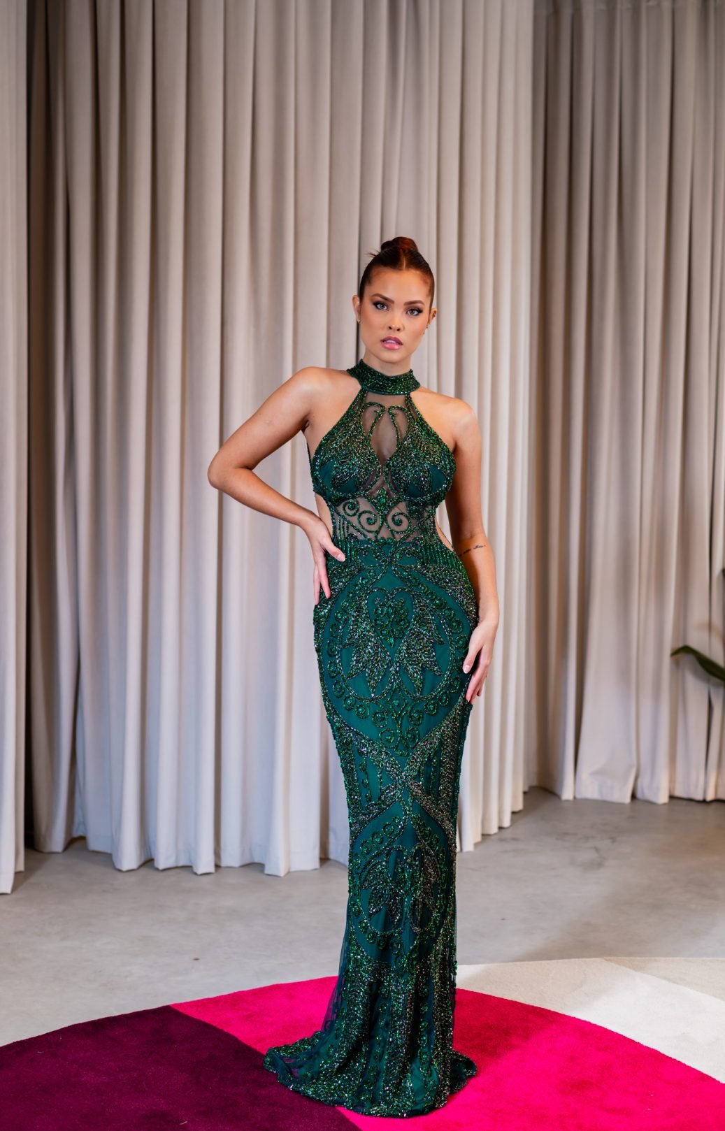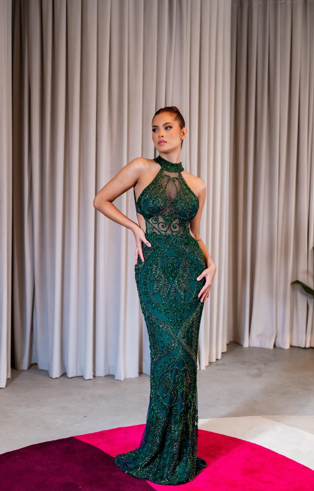 Feito com materiais de alta qualidade, o vestido tem um caimento perfeito que realça as curvas do corpo de forma lisonjeira. O decote discreto adiciona um toque de sensualidade ao vestido, que é complementado pela saia longa e fluida, criando um movimento gracioso.