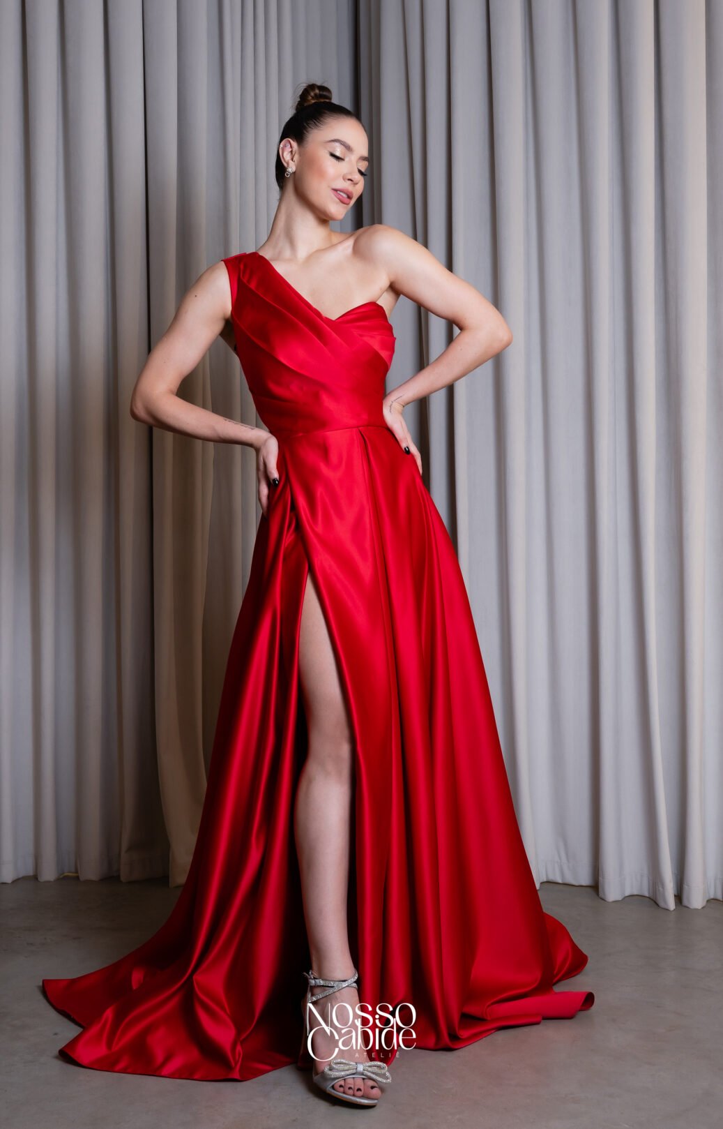 O corte impecável deste vestido realça a silhueta feminina, proporcionando um ajuste perfeito em todas as áreas do corpo. Longa e fluída acrescenta movimento e elegância a cada passo, enquanto valoriza os traços femininos.