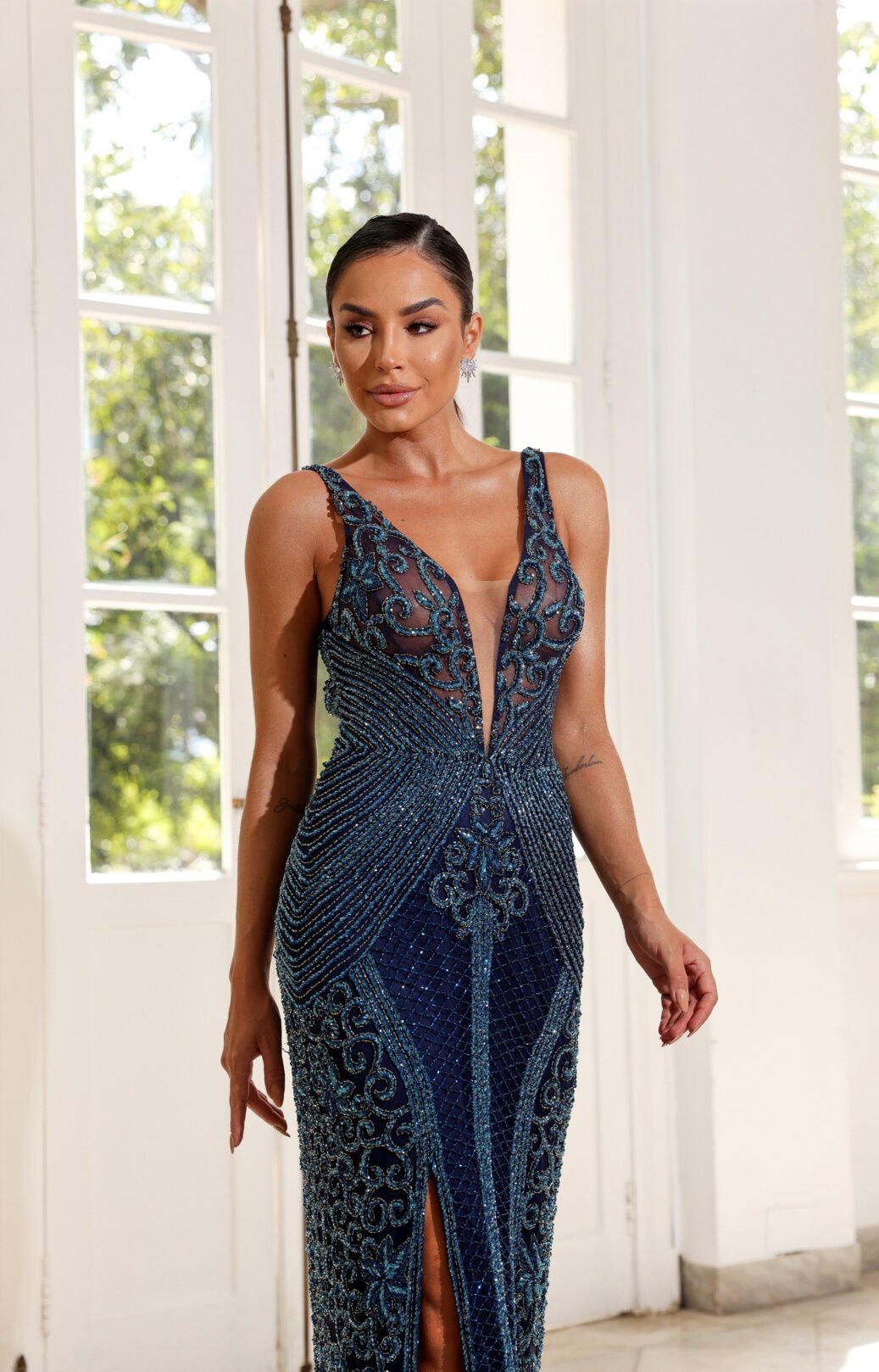 O corte impecável deste vestido realça a silhueta feminina, proporcionando um ajuste perfeito em todas as áreas do corpo. Longa e fluída acrescenta movimento e elegância a cada passo, enquanto valoriza os traços femininos.