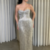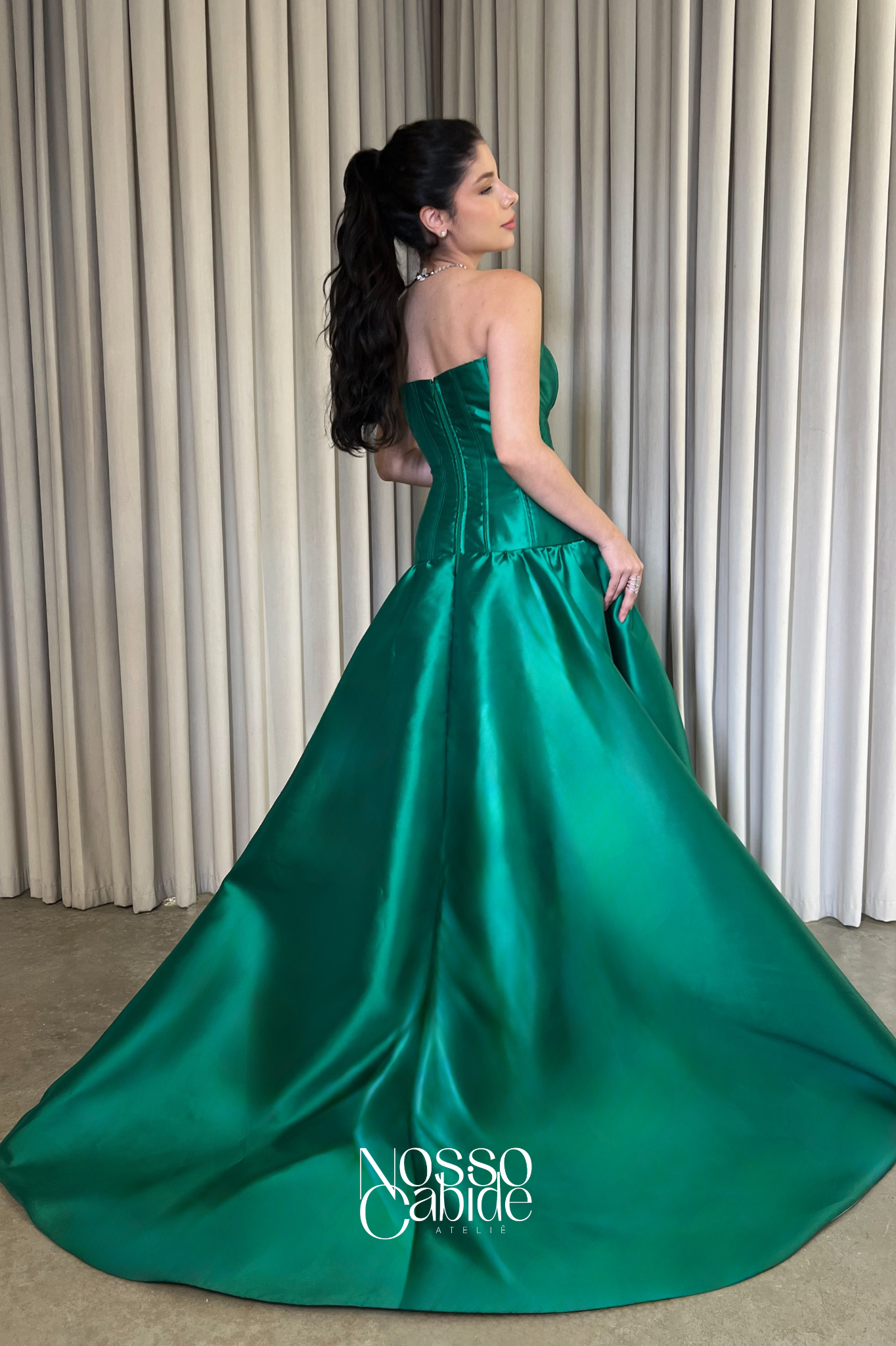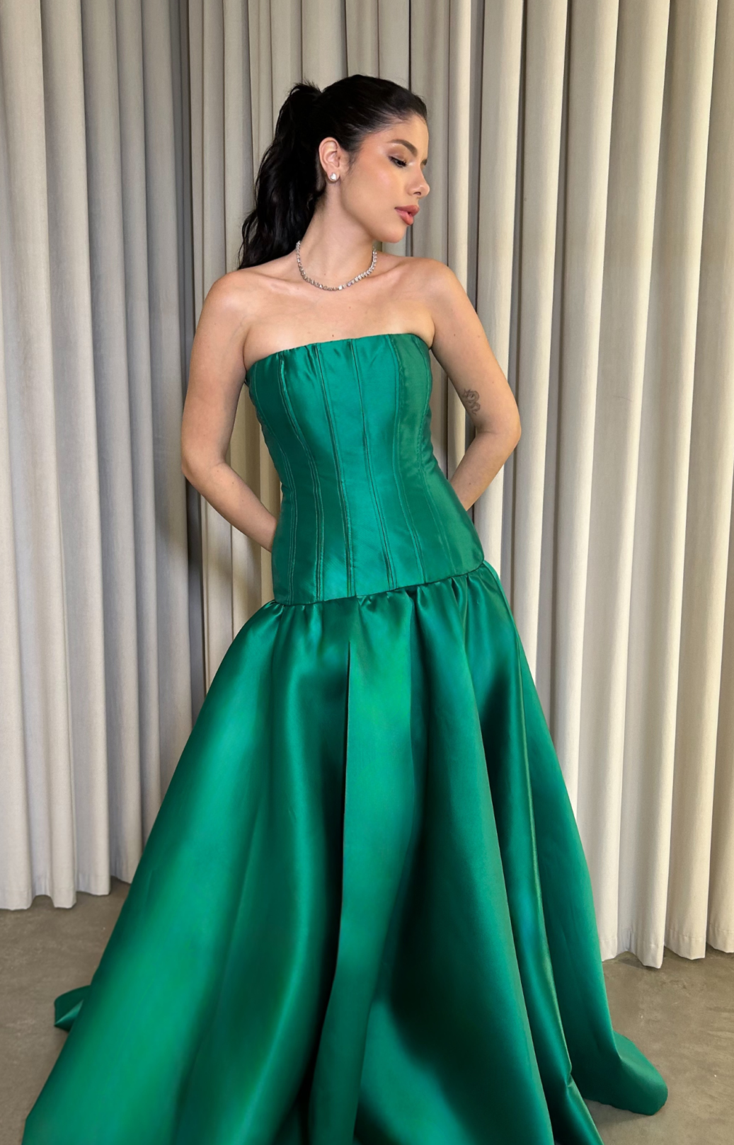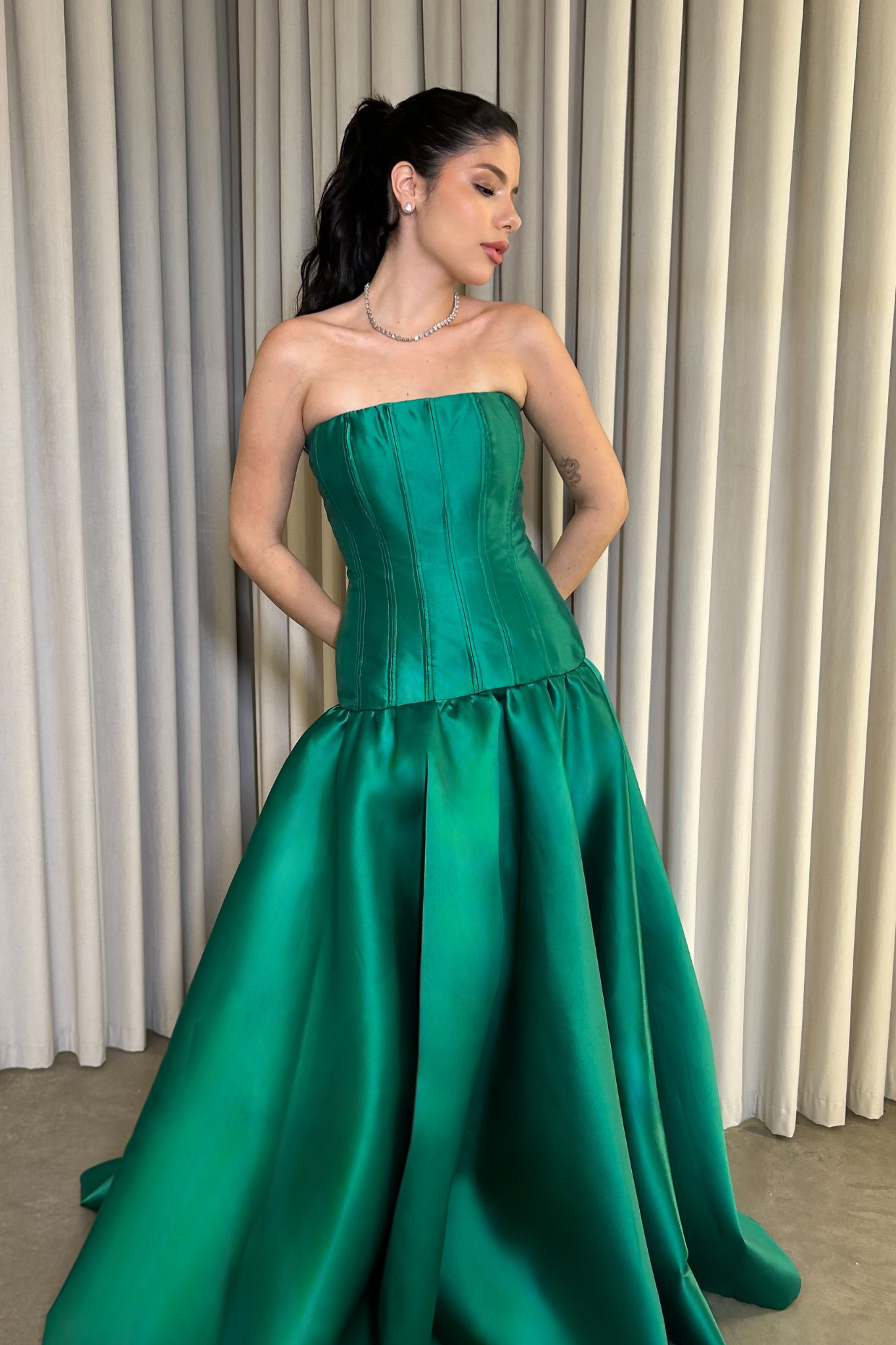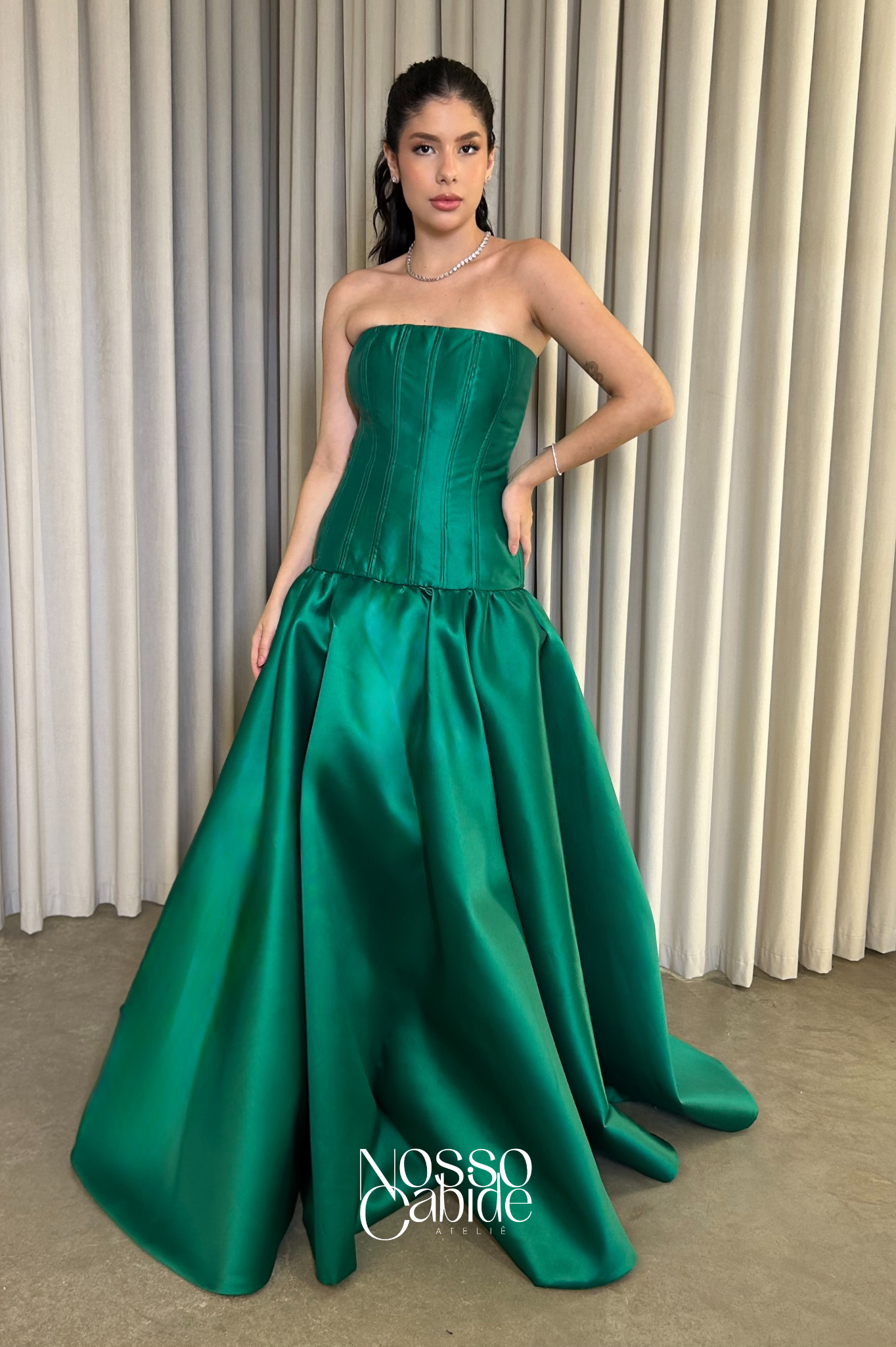 O corte impecável deste vestido realça a silhueta feminina, proporcionando um ajuste perfeito em todas as áreas do corpo. Longa e fluída acrescenta movimento e elegância a cada passo, enquanto valoriza os traços femininos.